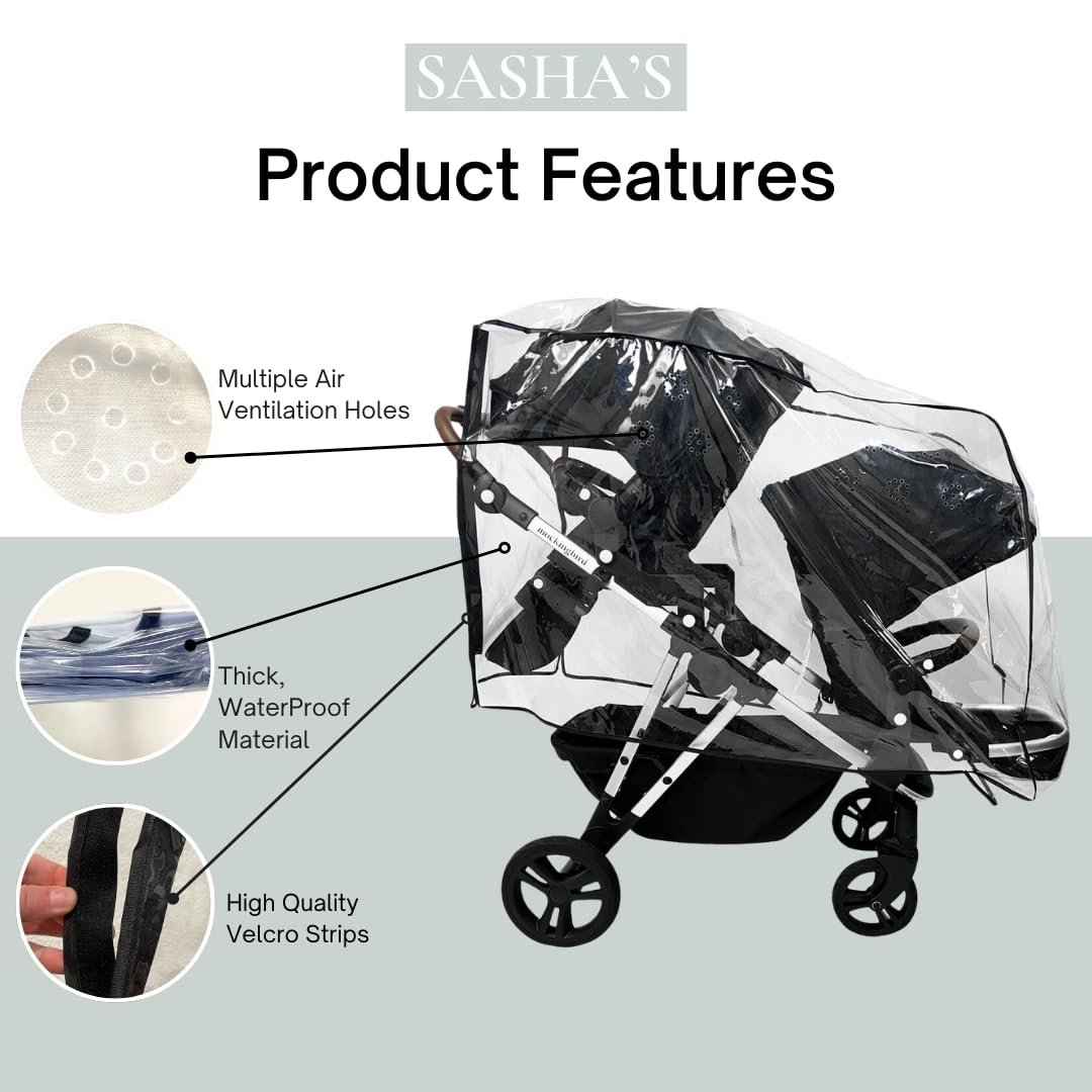 SASHA’S Rain and Wind Cover Made for Mockingbird Single-to-Double 2.0 Stroller w/Second Seat Kit 2.0,Ventilation Holes, Maximum Coverage Made in USA (Stroller not Included)