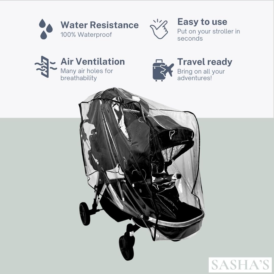Custom-Designed: SASHA’S Rain Cover MADE for Mockingbird Single-to-Double 2.0 Stroller w/ Second Seat Kit 2.0