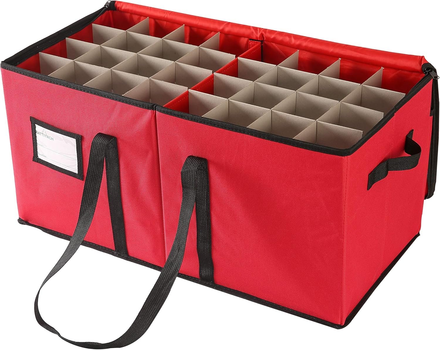 Sattiyrch Christmas Ornament Storage Box with Dual Zipper Closure – Box Contributes Slots for 128 Holiday Ornaments 3-Inch