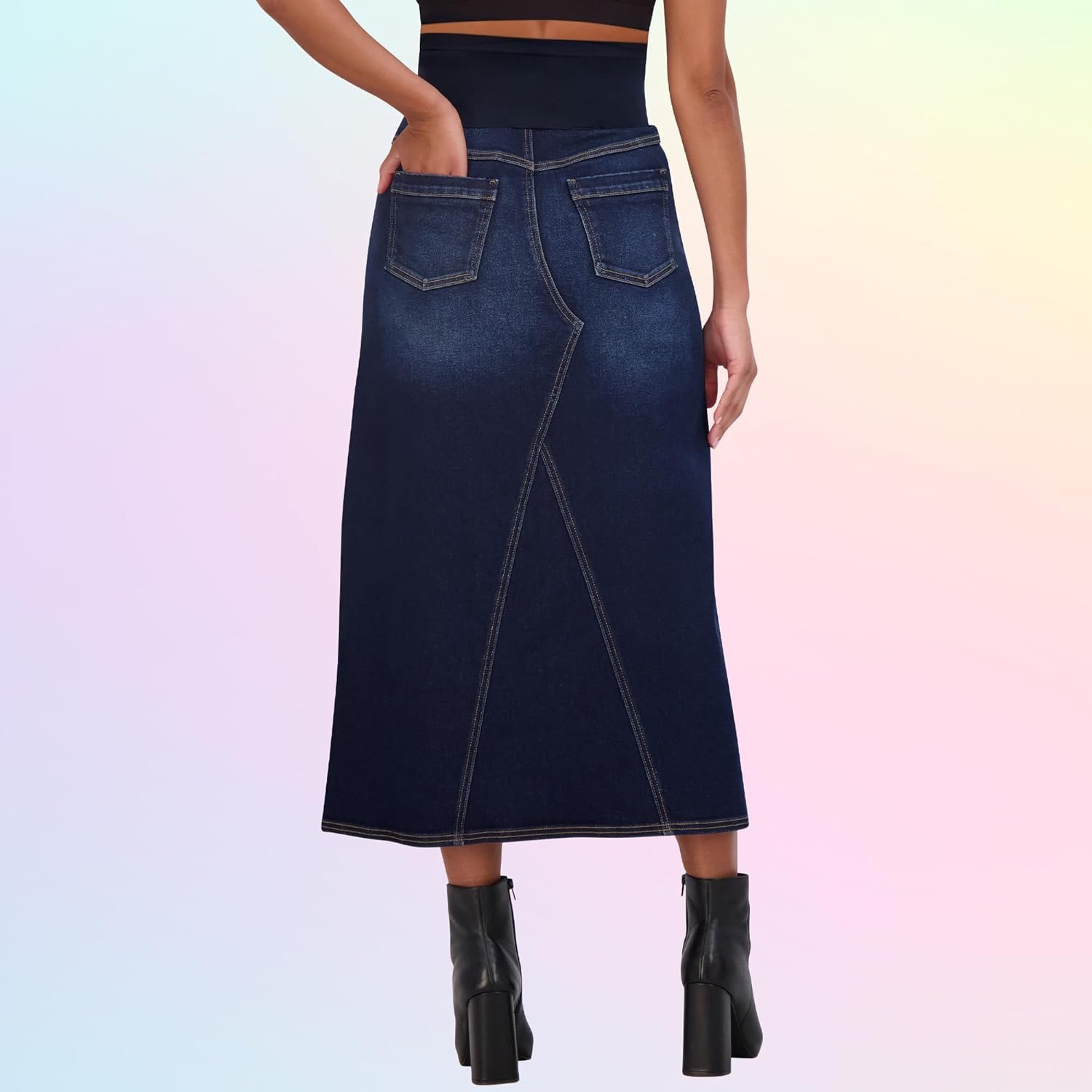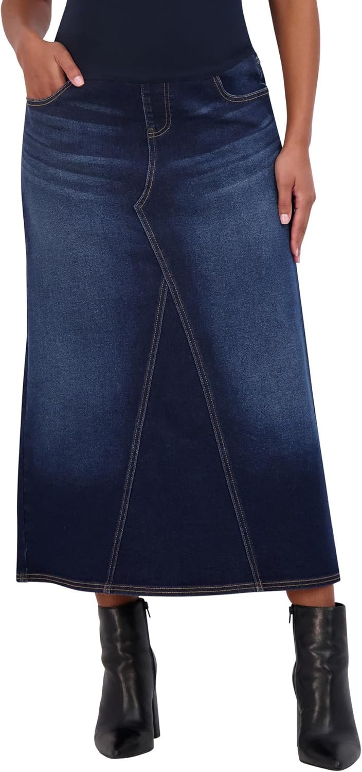 Savi Parker Denim Maternity Maxi Skirt with Pockets – A Line Maternity Jeans Over The Belly Long Pregnancy Denim Skirt