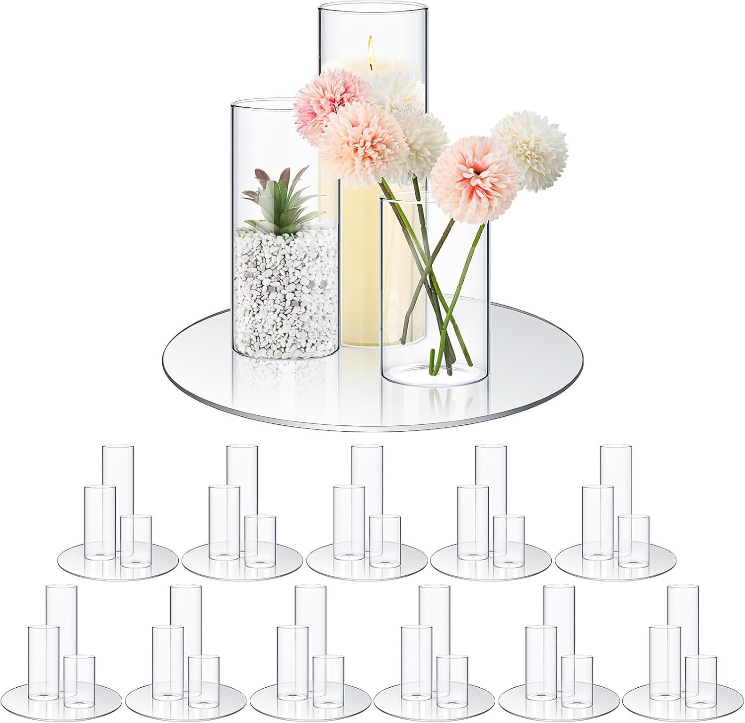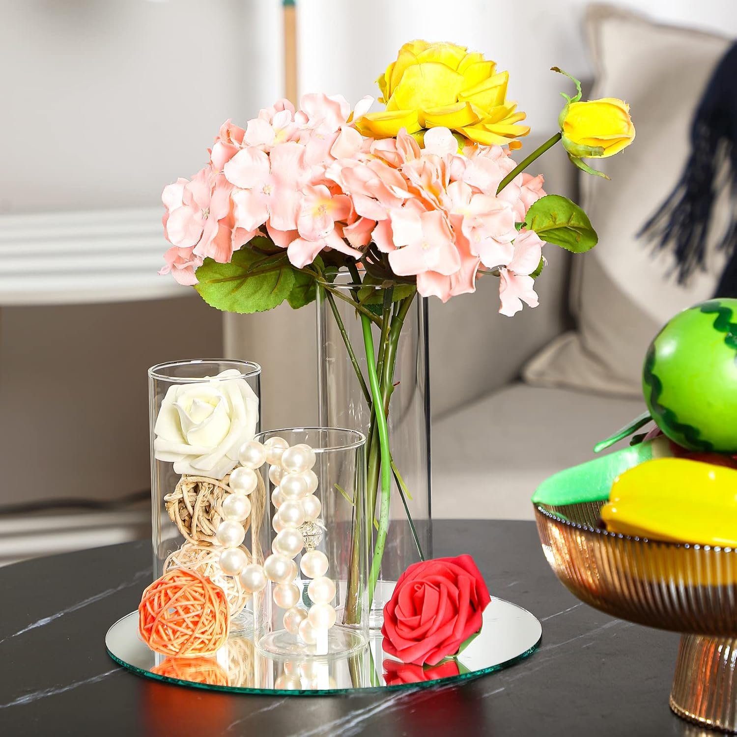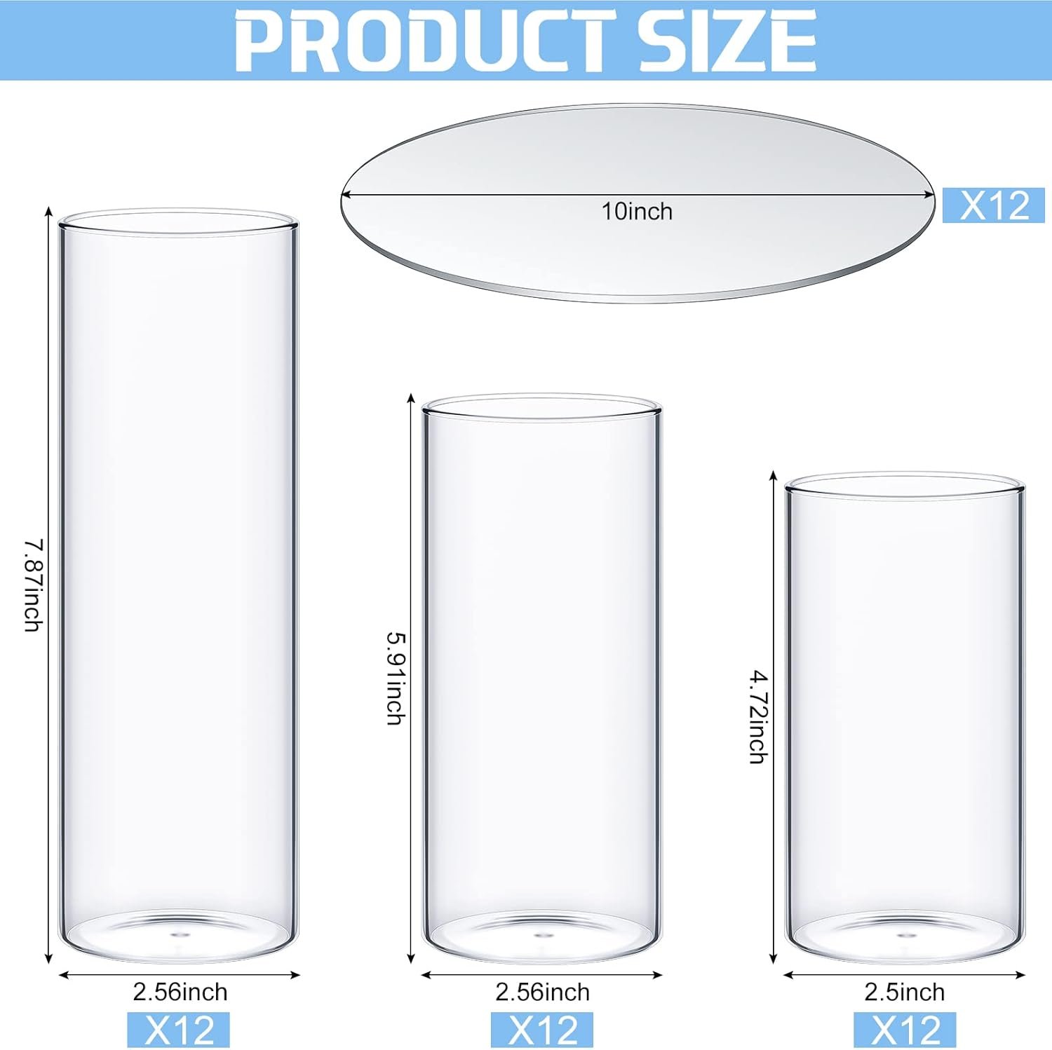 Package Included: you will get 36 pcs clear glass cylinder vases and 12 pcs round mirror tray; They come in 3 different heights, easily fits your vase or decoration needs; Each product is carefully packaged and can be applied alone or in combination for your daily use