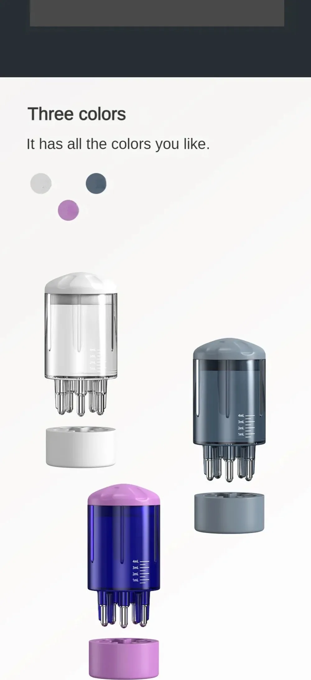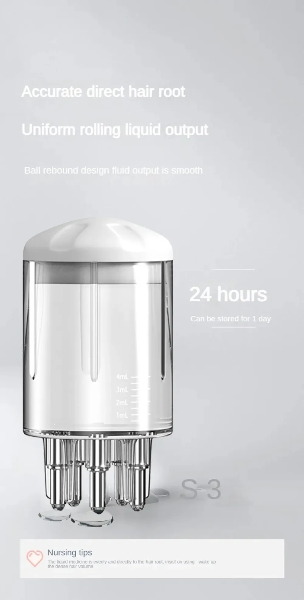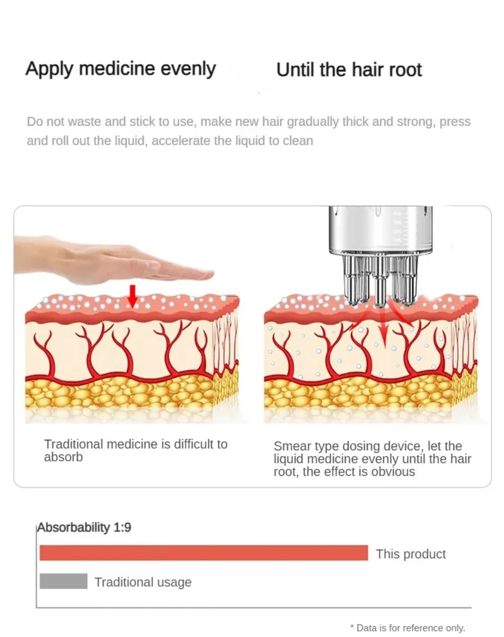6. Equipped with 5 elastic rolling ball teeth to introduce liquid medicine uniformly into the hair root, and a squeezable handle to control the volume. With it, you’re free from hand stains and medicine waste.