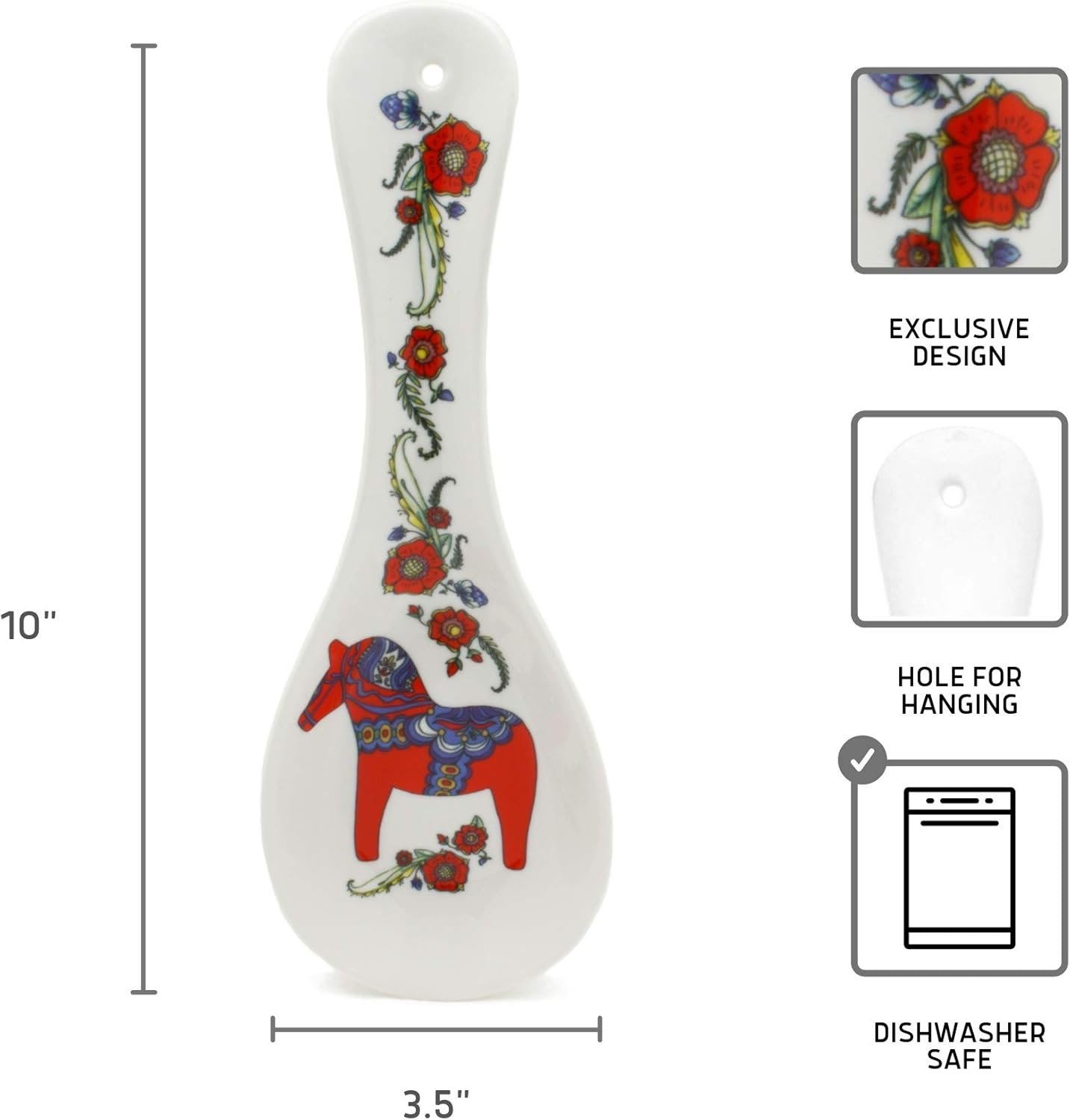 Featuring a traditional red Dala Horse themed design, this Spoon Rest will make for a charming addition to any kitchen counter or wall. A perfect Scandinavian gift that will provide a welcome decorative European touch in any grandparent’s or loved one home.