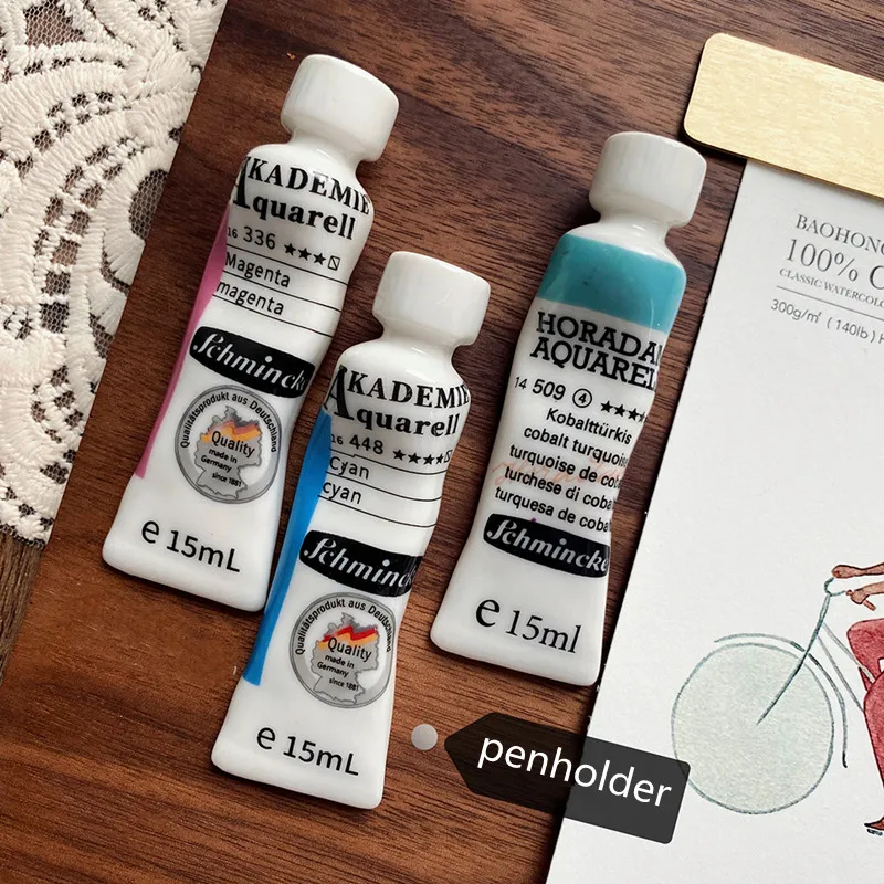 Schmincke Ceramic Pen Holder Brush Shelf Tubular Paint Ornaments Photo Props Cute Pen Holder for Art Students Painting Supplies