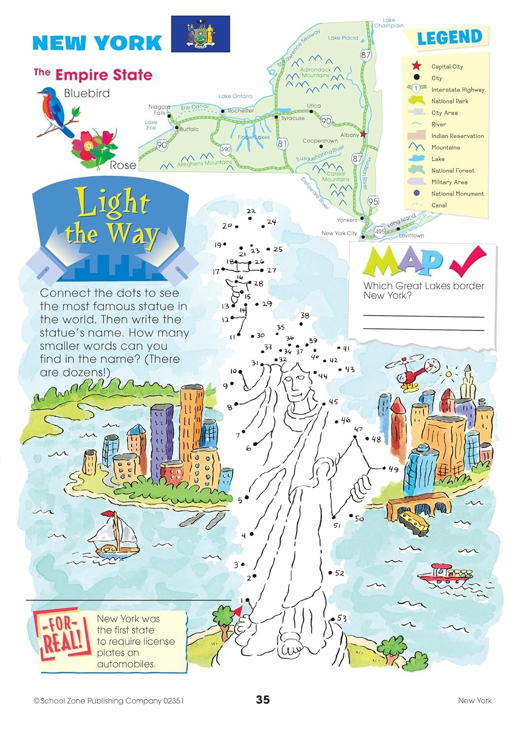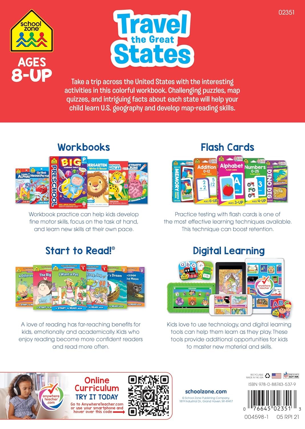 School Zone Travel the Great States Workbook: 64 Pages, 3rd Grade, Geography, Map-Reading, United States, Ages 8+ (Activity Zone Book Series)