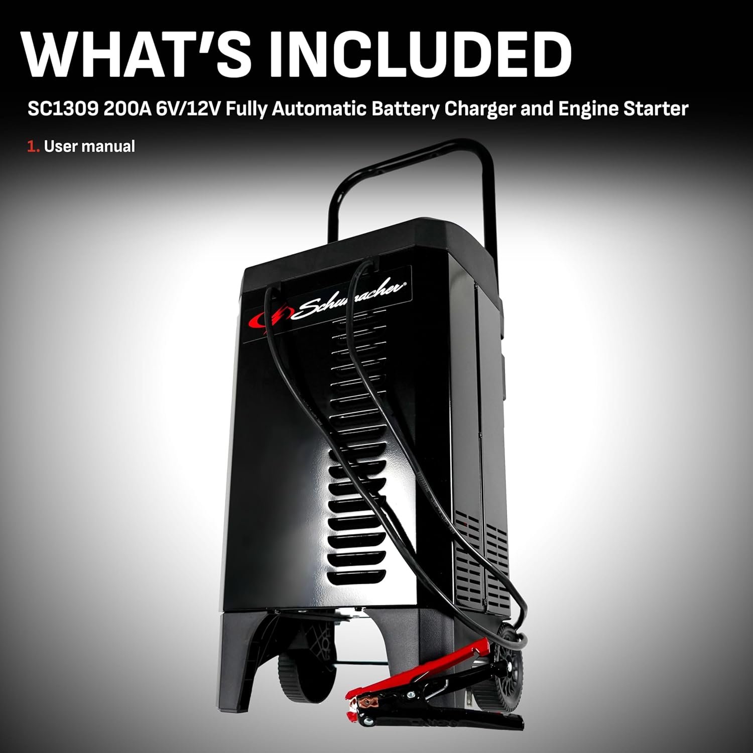 Schumacher Electric Fully Automatic Battery Charger & Engine Starter – 6/12 Volt Car Battery Charger, 200 Amp Engine Start & 40 Amp Boost – Alternator Tester with Multi-Stage Charging SC1309