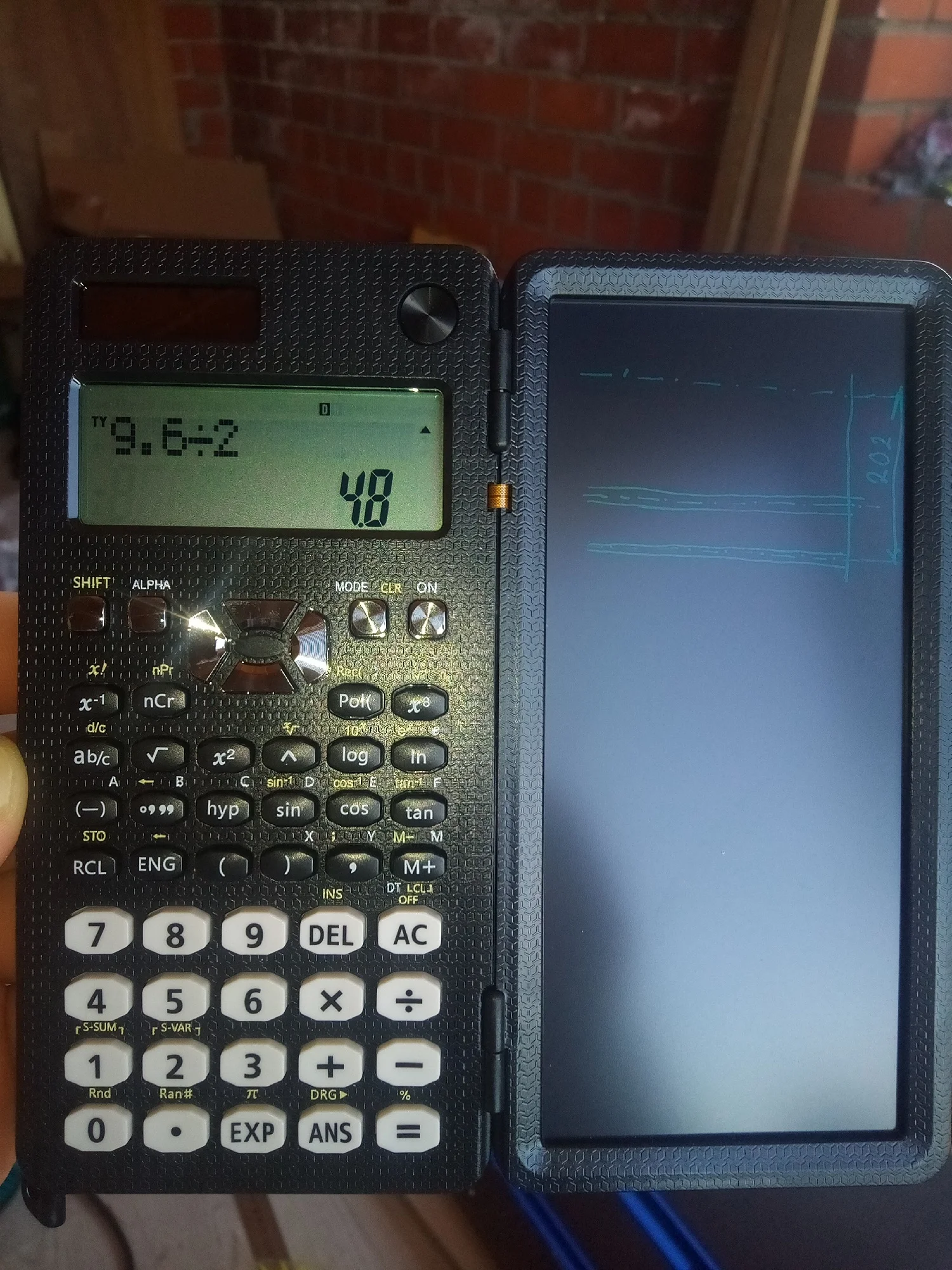 【Scienticfic Calculator with Notepad】Come with a 6.5-inch writing tablet and a pen, which allows you to take notes while calculating. You can press the delete button to erase the notes, and also can lock it to keep them.