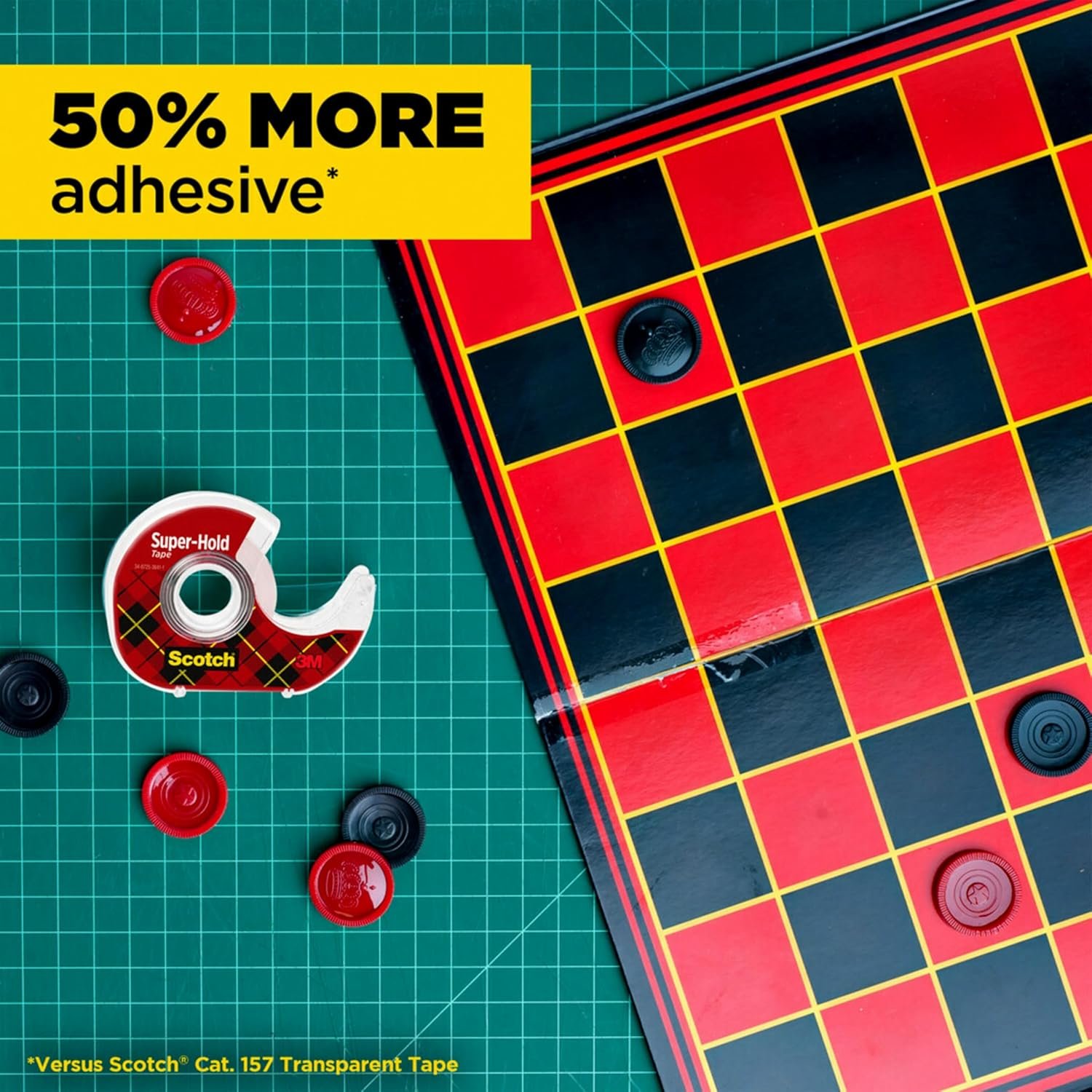From sealing envelopes to making quick fixes on the fly, rely on the powerful bond of Scotch Super Hold Tape. Designed with 50% more adhesive, this innovative tape offers a stronger bond than our standard transparent tape (Versus Scotch Cat. 157 Transparent Tape). The thicker backing delivers outstanding durability when a secure, lasting hold is essential. Virtually crystal clear, this tape holds strong without standing out–perfect for repairs, mounting, crafts and more. The convenient dispenser fits comfortably in your hand and lets you unroll and cut your desired amount with ease. Whether you’re concealing confidential documents, sealing a small care package, trust what matters to you to the superior adhesion of Scotch Super Hold Tape.