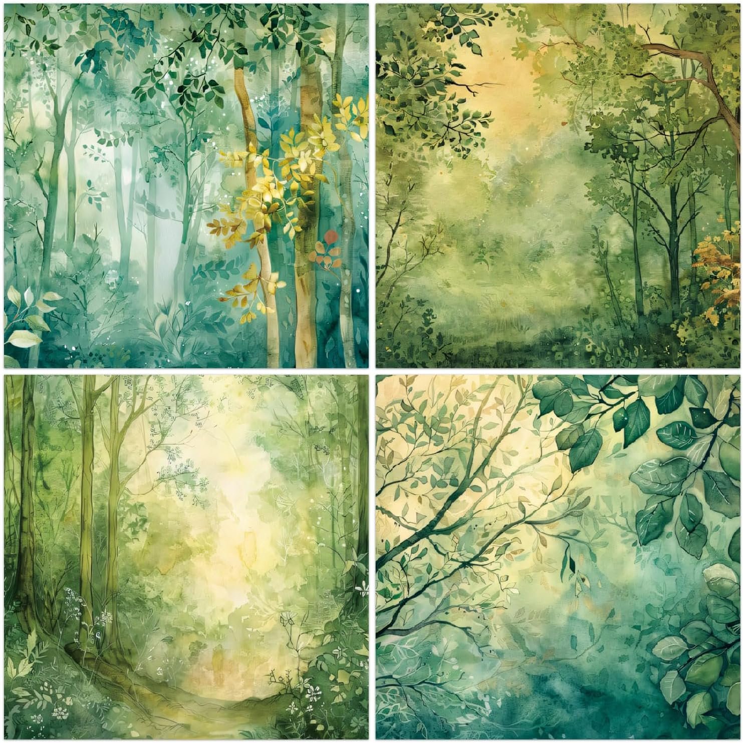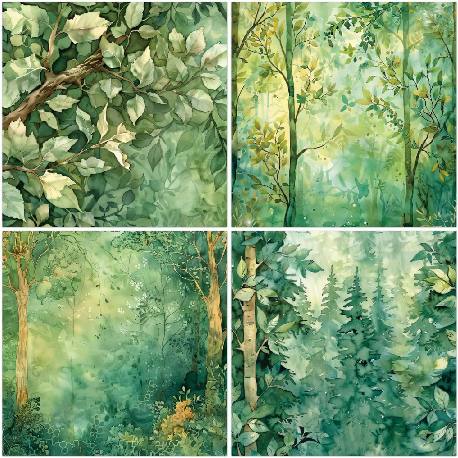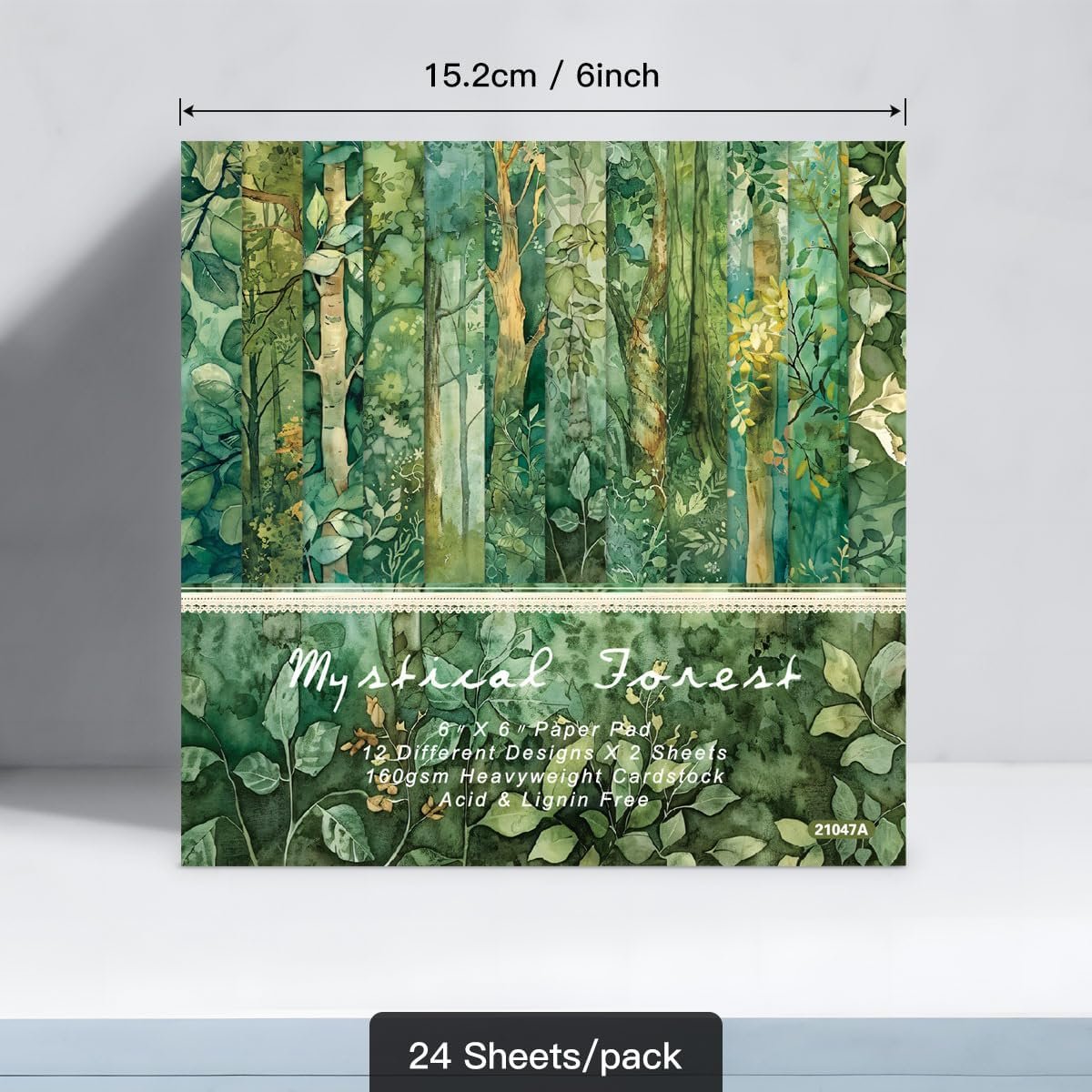 Scrapbook Paper Pad – 6×6 inch Green Forest Patterned Decorative Craft Paper for Scrapbooking Planner Bullet Junk Journal Supplies Mixed Media Collage Card Making,24 Sheets