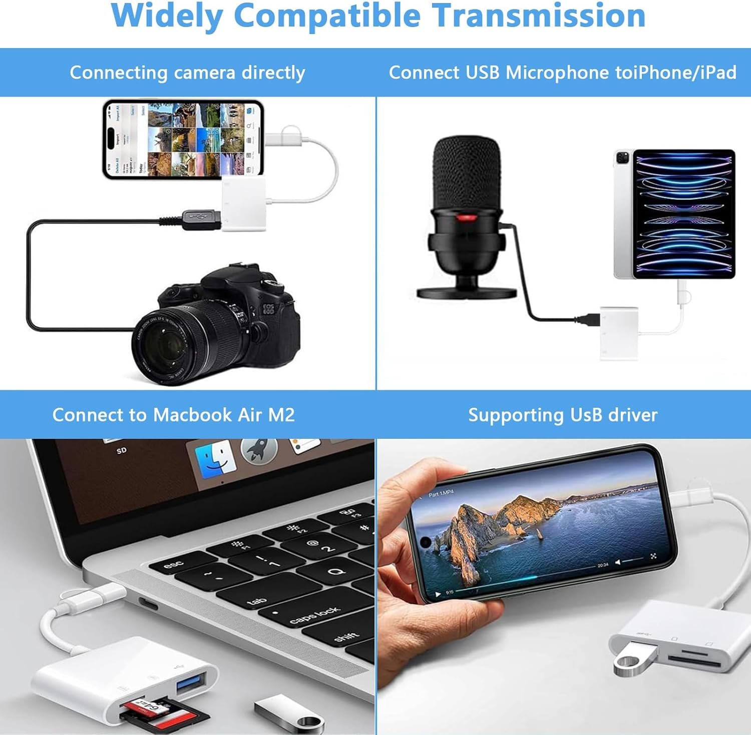 Bidirectional Transmission: Our memory card adapter for iPhone allows for seamless bidirectional transfers between SD cards and your device. Effortlessly download photos and videos from your memory card to your iPhone or vice versa, enabling you to share memories anytime, anywhere with this reliable camera adapter for photography
