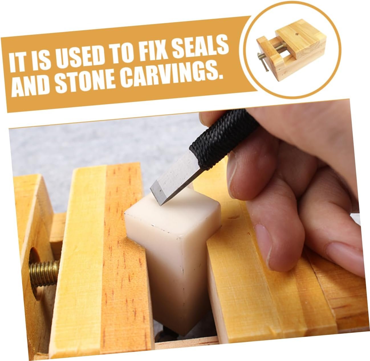 -Material:Wood, Metal stone seal carving clamp