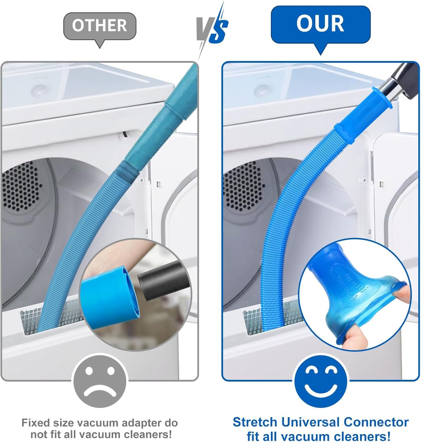 [Fits All Vacuum Cleaners] Sealegend dryer vent vacuum attachment features a premium EVA elastic universal connector design, compatible with all vacuum cleaners, solving compatibility issues!