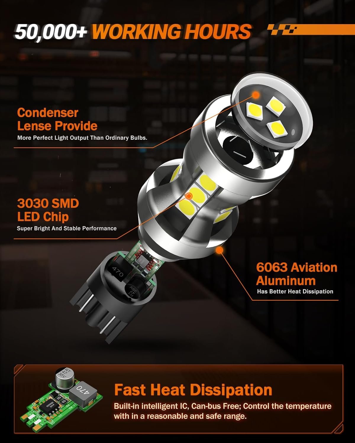【200% Faster Heat Dissipation】T15 led bulbs made of aircraft grade aluminum and great solid connection with the socket, which means the 912 led reverse light bulb will work just fine at least 6 years.