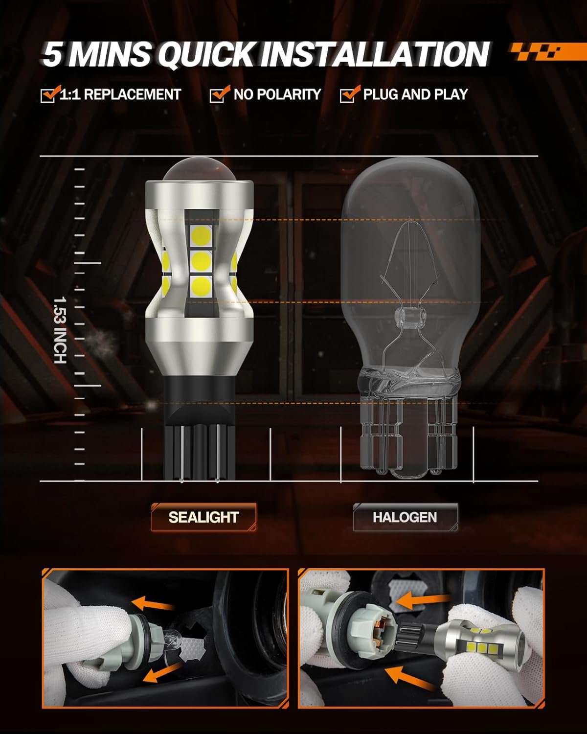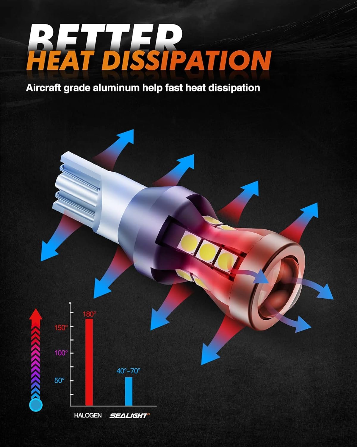 【1300% Brighter Than Halogen】SEALIGHT 912 921 led reverse light bulb to own 2600LM brightness with 6000K coll white light,that means you will be able to see farther and clearer when reversing even the rainy night