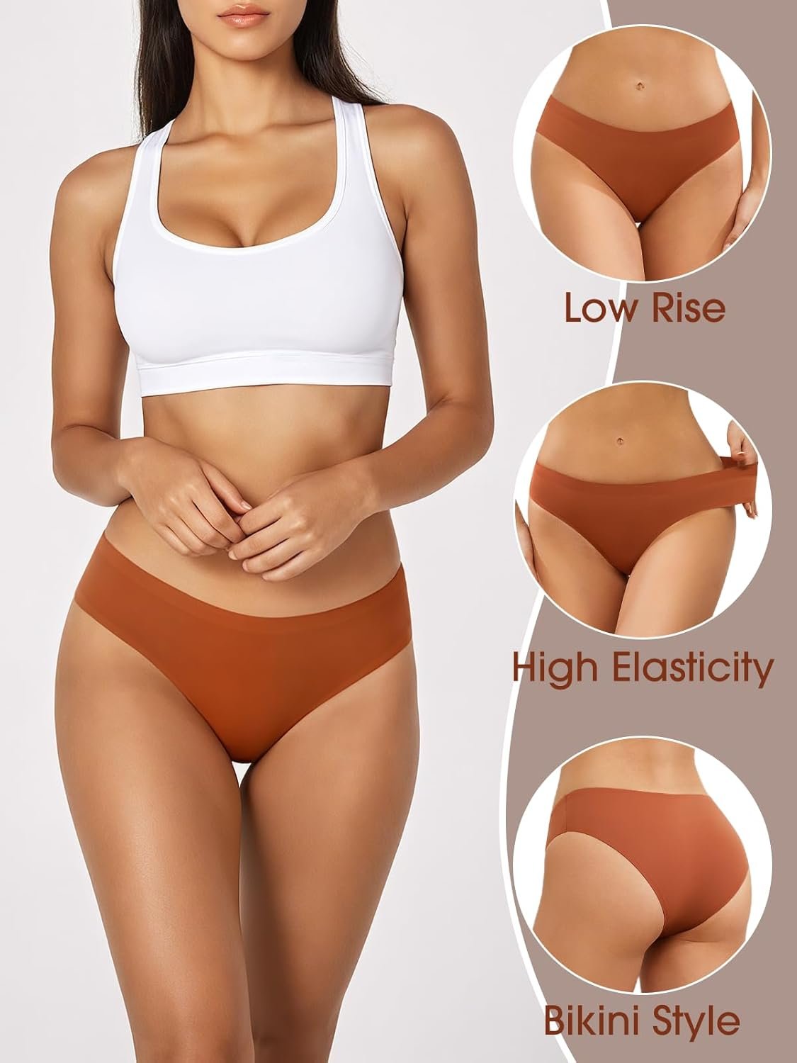 Seamless Underwear for Women No Show Hipster Bikini Panties Low Rise Cheeky Breathable Soft Invisible Briefs 6 Pack