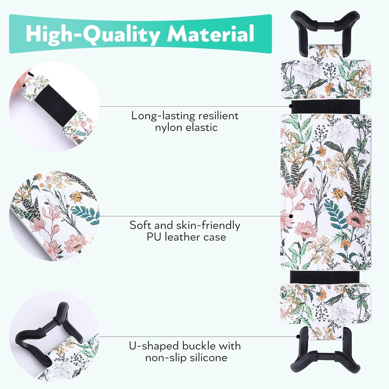 [Quality materials]:The tablet hand strap is made of high quality faux leather and highly elasticated nylon stretch strap with non-slip silicone grips to protect the screen.
