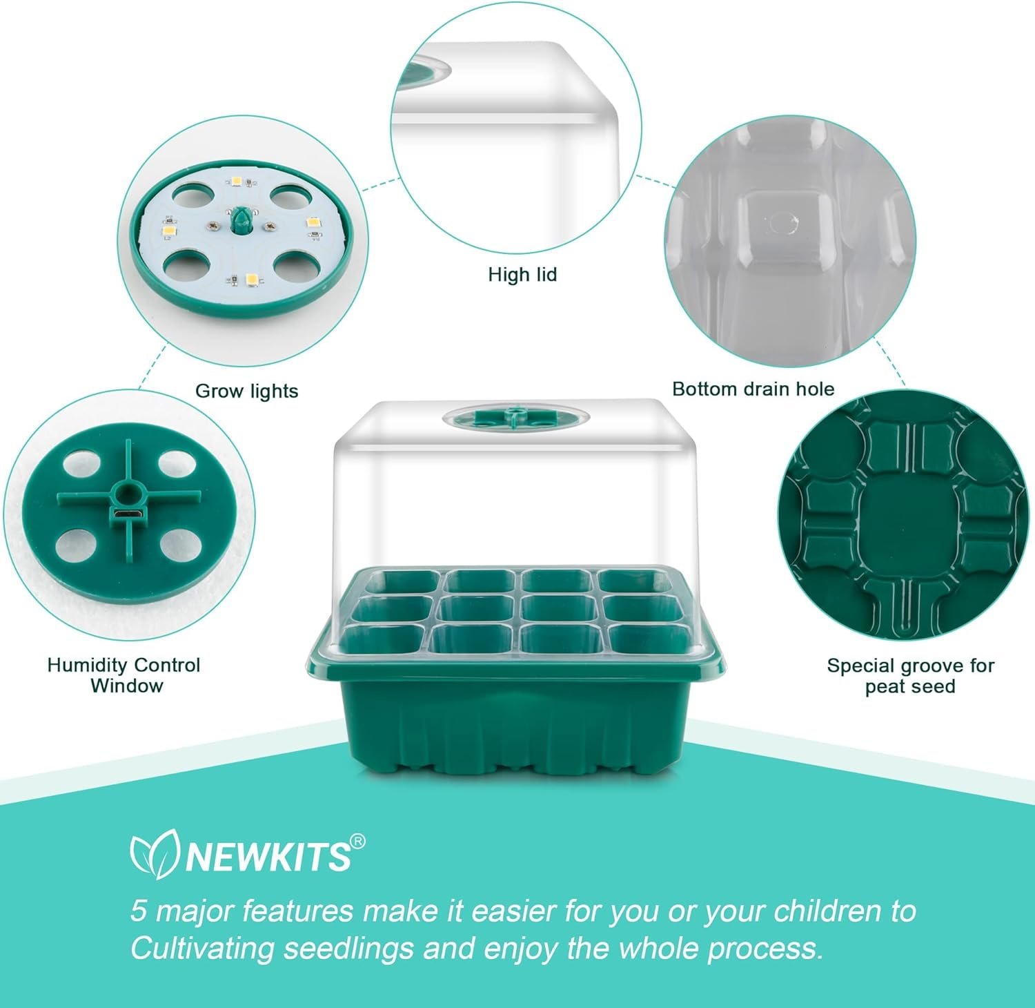 Upgrade LED Seedling Germination Box- In order for your seedlings to grow better, the top switch of the NEWKITS planting germination box has been upgraded to a full-spectrum waterproof plant light with 4 leds. It can be used as the temperature and humidity adjustment switch of the seeding box, and as a plant lamp to provide light for your plants.