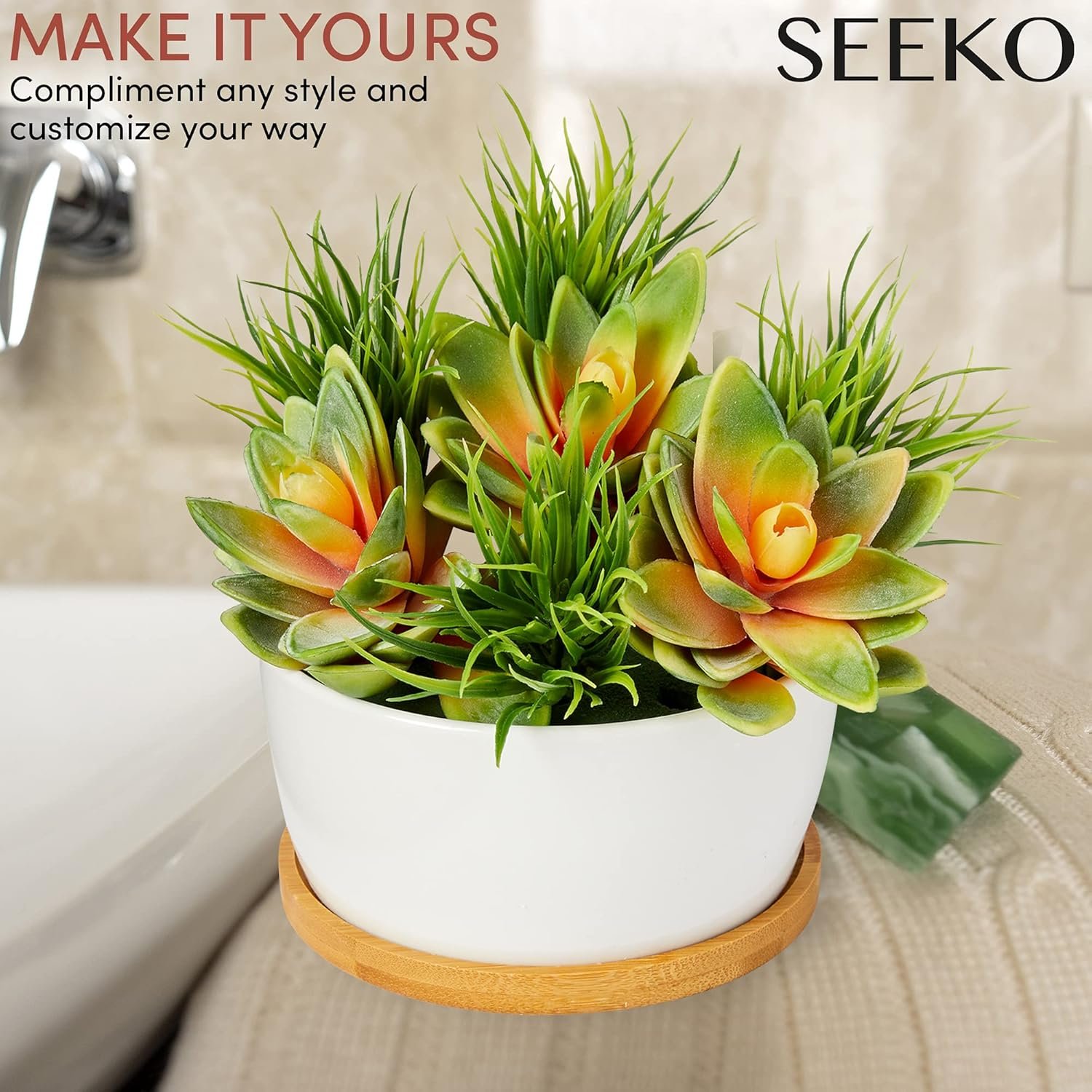 SEEKO’s ultra-realistic artificial succulents help bring your creative visions to life. The professionally selected assortments are designed to add depth and volume for DIY crafting and decorating at any skill level.