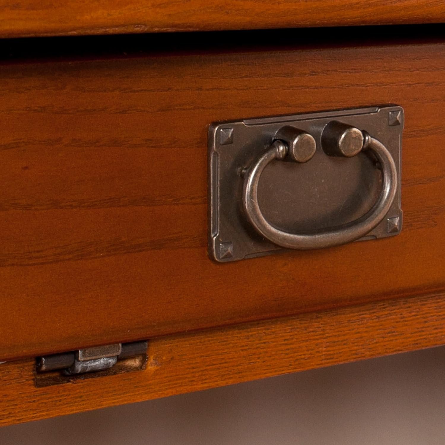 Mission oak finish with gun metal hardware; Craftsman inspired mission style