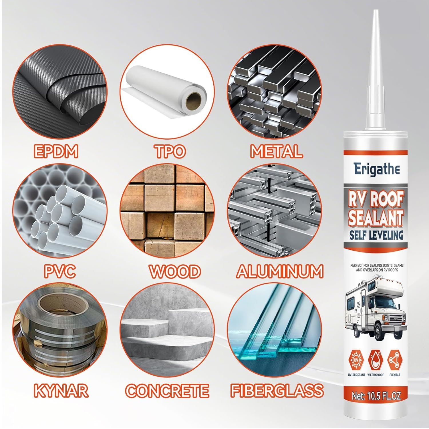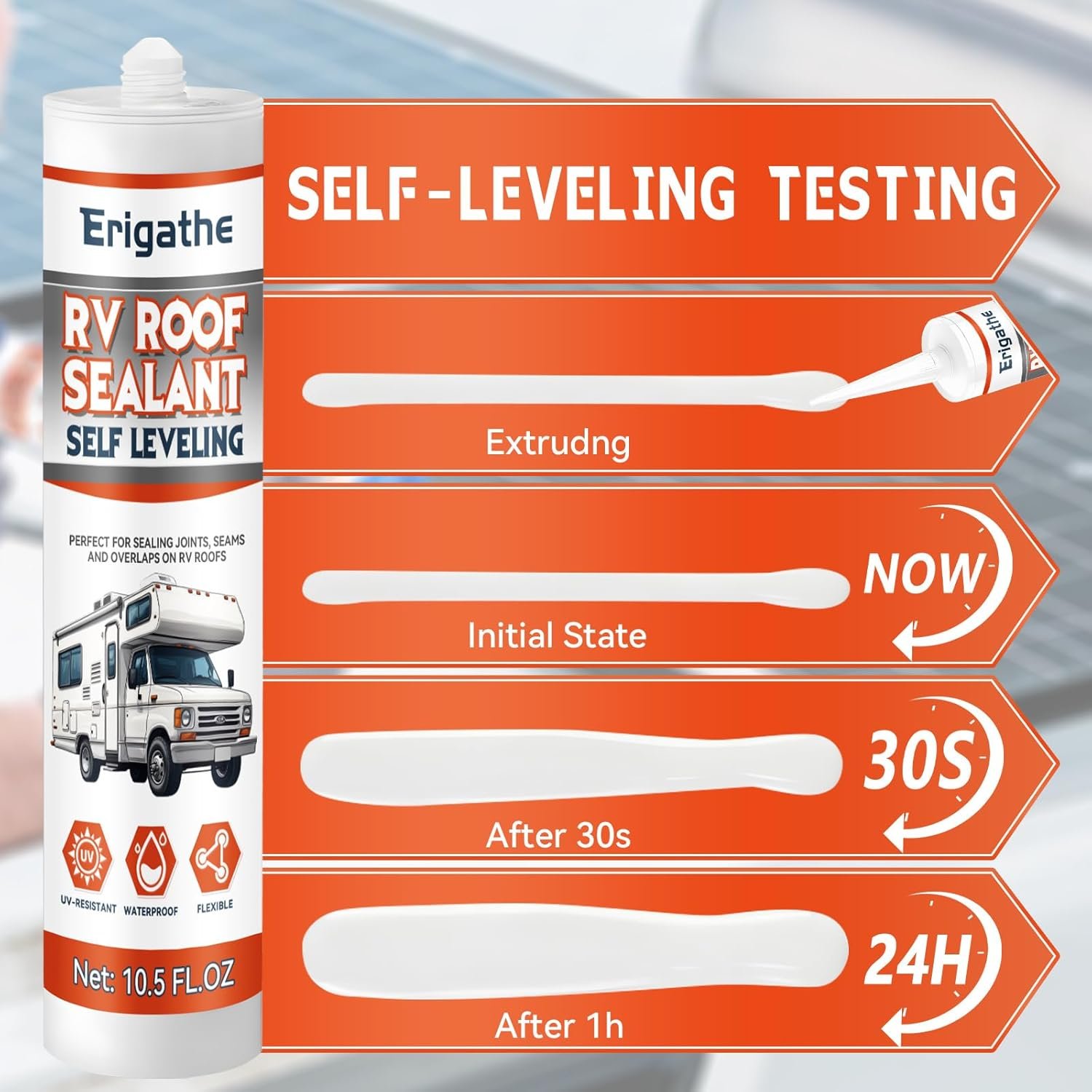 【Self-Leveling RV Roof Sealant】Specially designed for RV and camper roofs! Flows smoothly into cracks and laps, creating a watertight, UV-resistant barrier without messy manual smoothing.