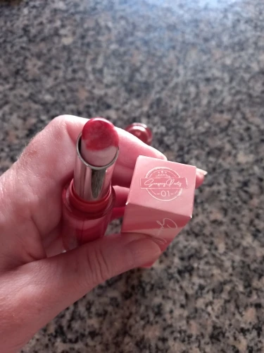 Very cute, the color is natural and the packaging is really beautiful, it smells like sweet and feels like any very moisturizing balm.