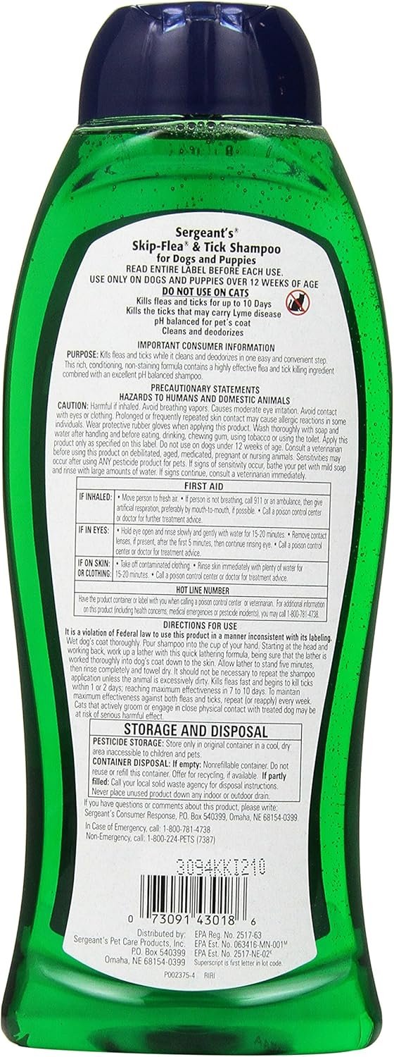 Sergeant’s Skip-Flea and Tick Shampoo for Dogs, Clean Cotton, 18 oz