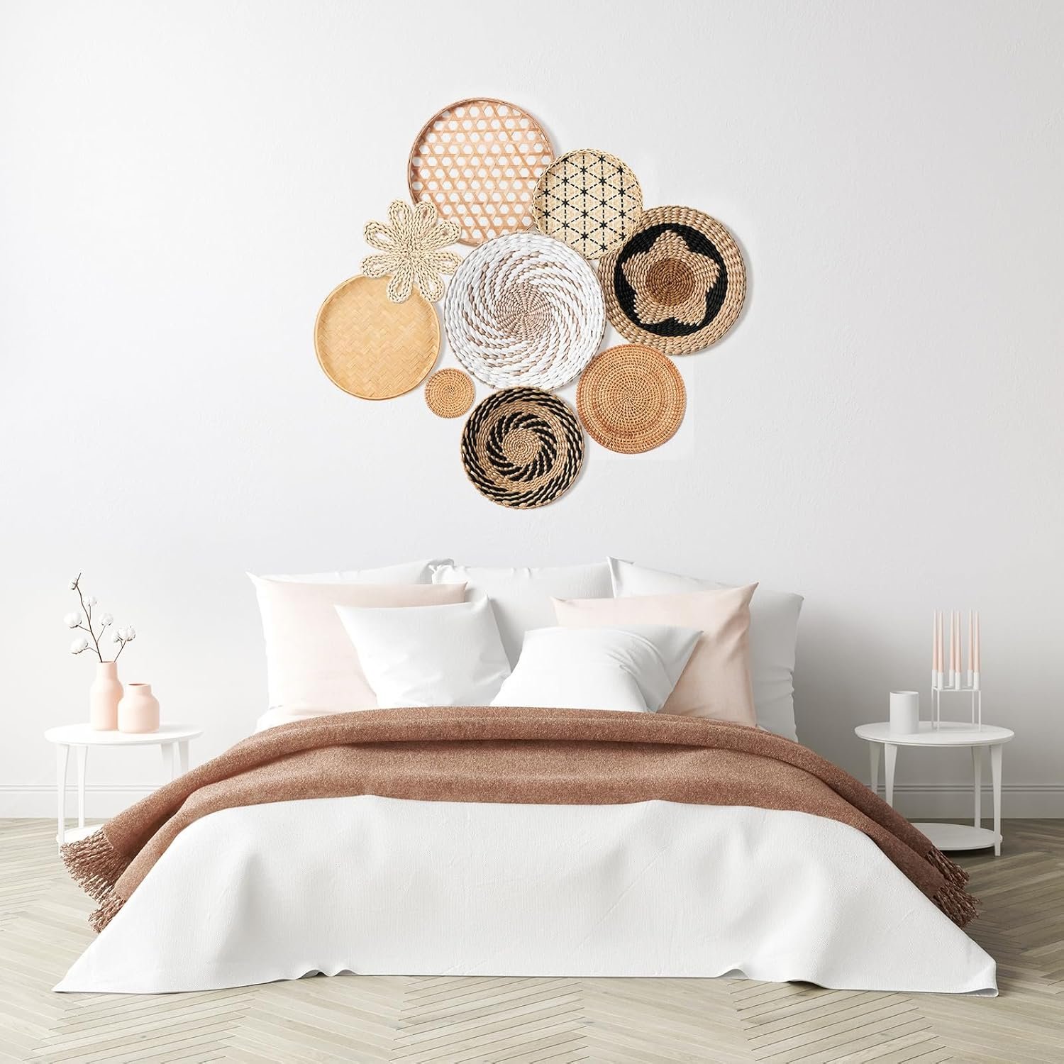 Versatile Decoration: these woven boho basket wall decor kits can be hung in most desired locations, especially on interior walls; They are well suited for living rooms, bedrooms, bathrooms, studies, kitchens, apartments, dorms, offices, cafes, restaurants, and hotels, enhancing the atmosphere of most spaces