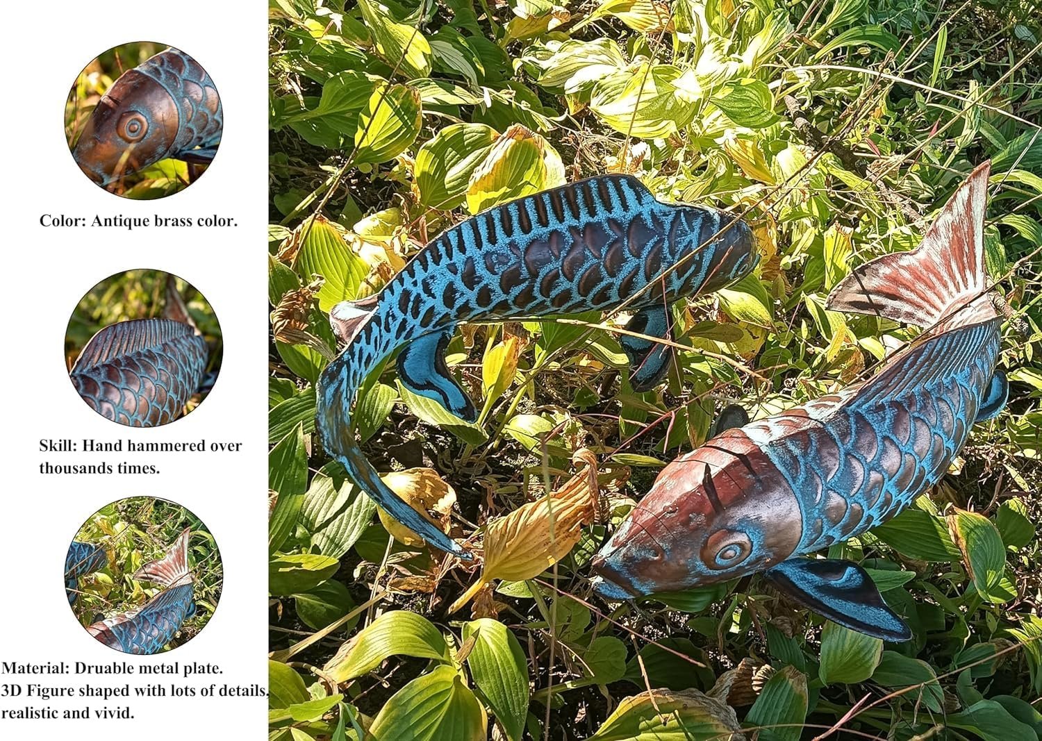 Set of 2 Koi Fish Decor Outdoor Statues Sculptures Antique Copper Garden Pond Fishes Art Metal Koi Fish Statue Outside Garden Décor Ornaments for Outdoors,Patio,Yard,Lawn,Pond,Home Decorations