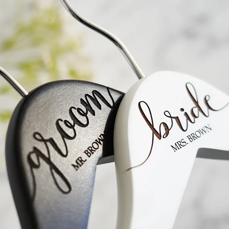 SET of 2 Personalized Black White Hangers Engraved Hangers for Bride & Groom Wedding Bachelorette Party Bridal Shower Decoration