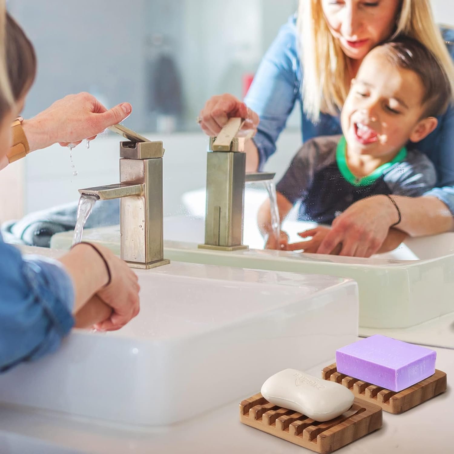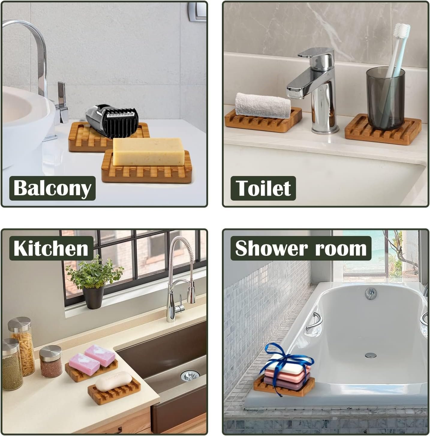 Fast-Draining Soap Dishes – Stay Dry & Clean:Each soap dish features a smart slanted design with open grooves to help water flow off quickly, keeping your bar soap dry, clean, and long-lasting — no more soggy messes on your bathroom or kitchen sink