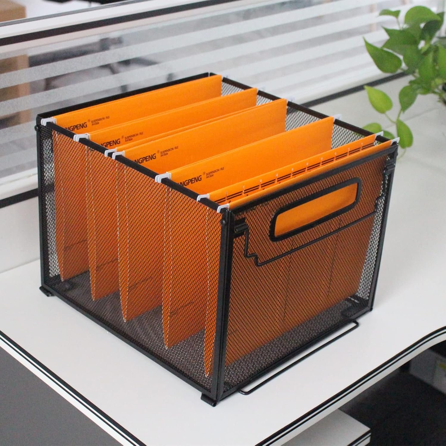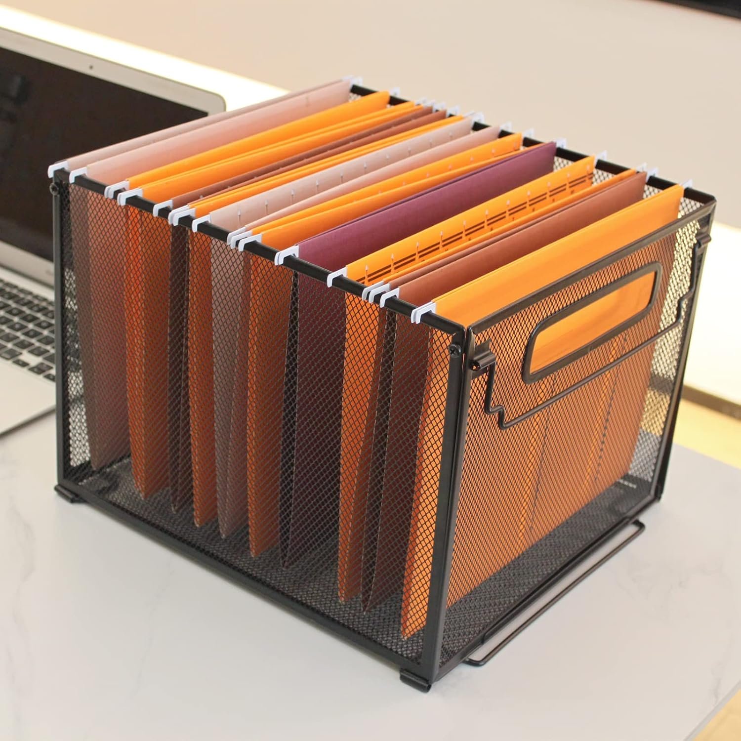 SETTFRFE Letter Size Metal Mesh Hanging File Folder Organizer Crate Basket, Black