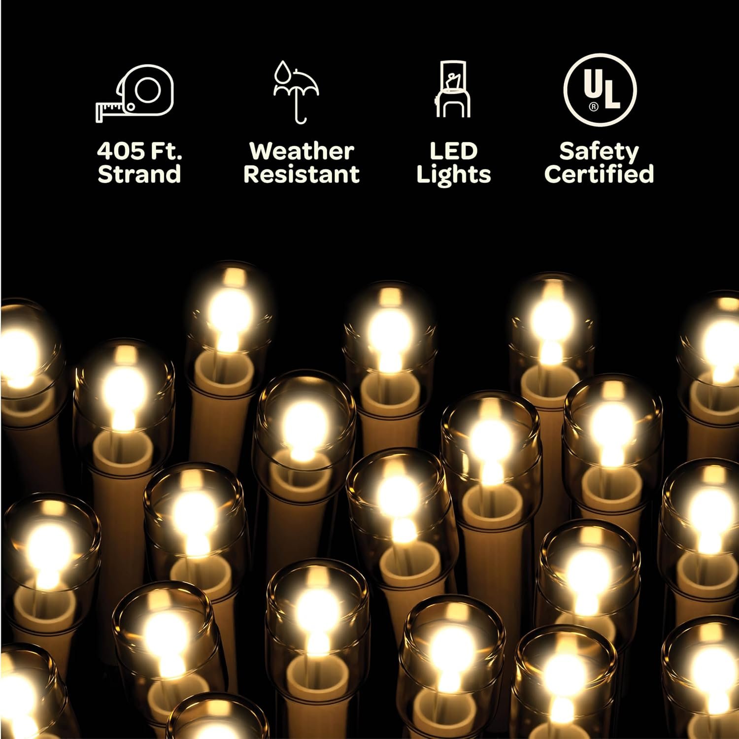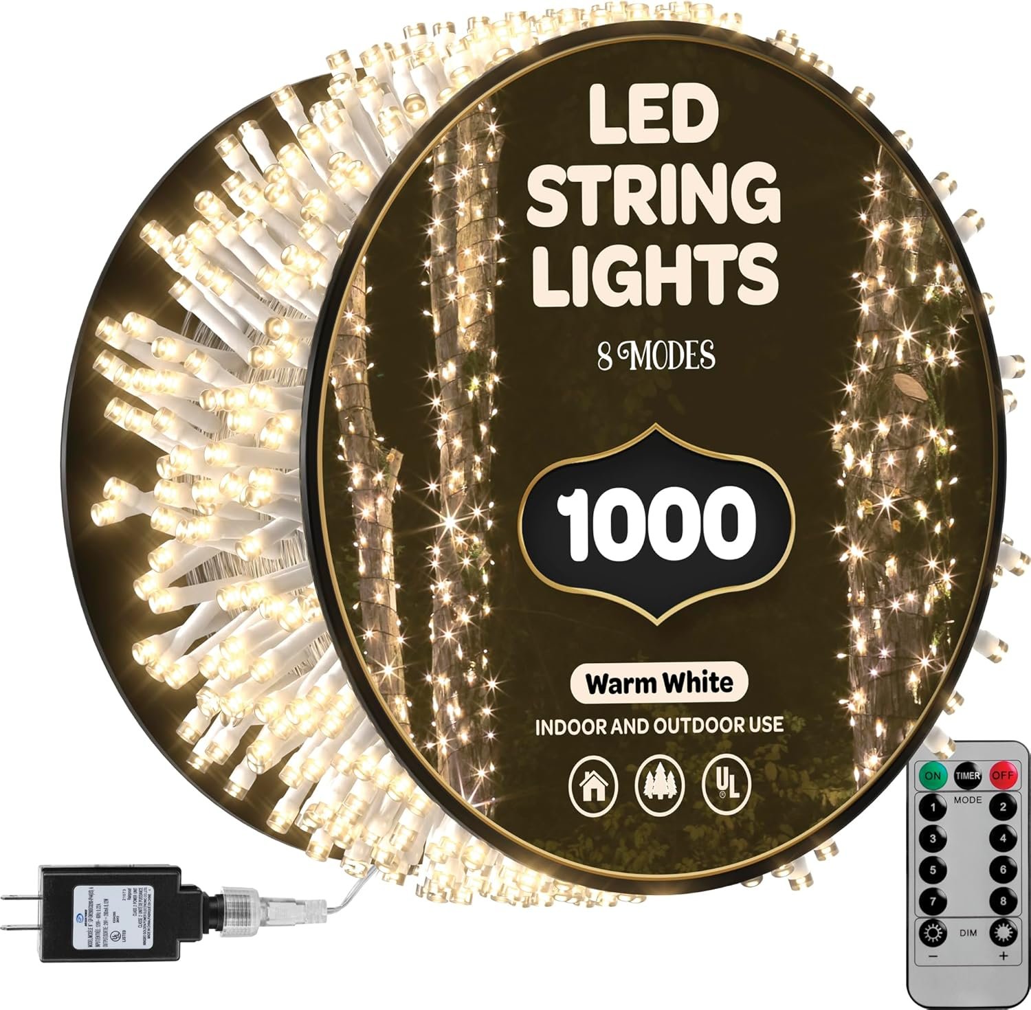 SEWANTA 1000 LED Christmas Lights [Warm-White] 400ft String Lights Outdoor, with 8 Modes/Timer/dimmable – UL Approved for Indoor/Outdoor Use – for Holiday/Christmas/Party/Decorations (Clear Wire)