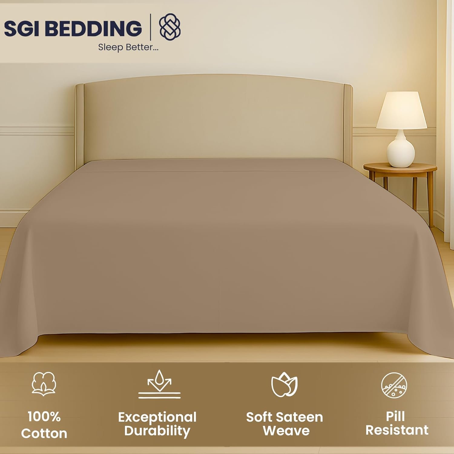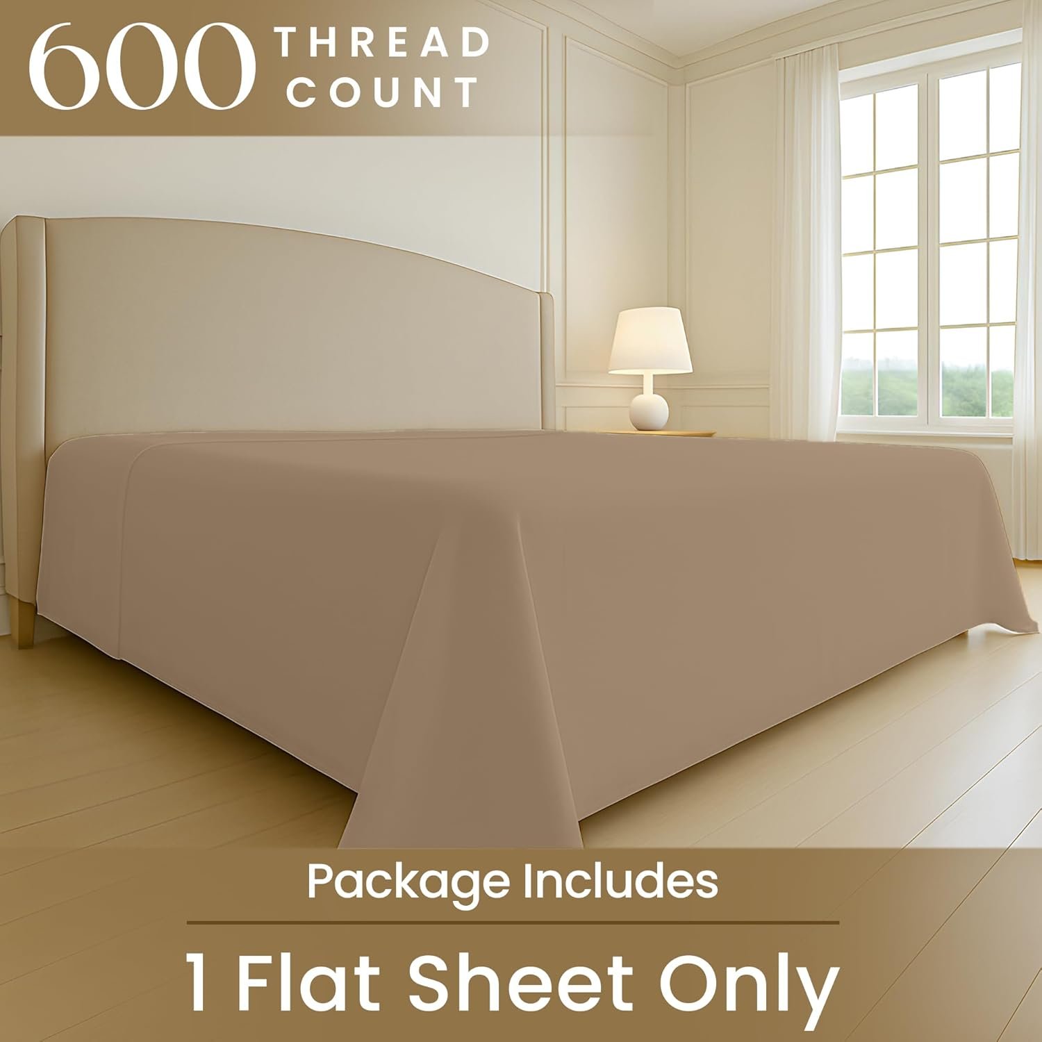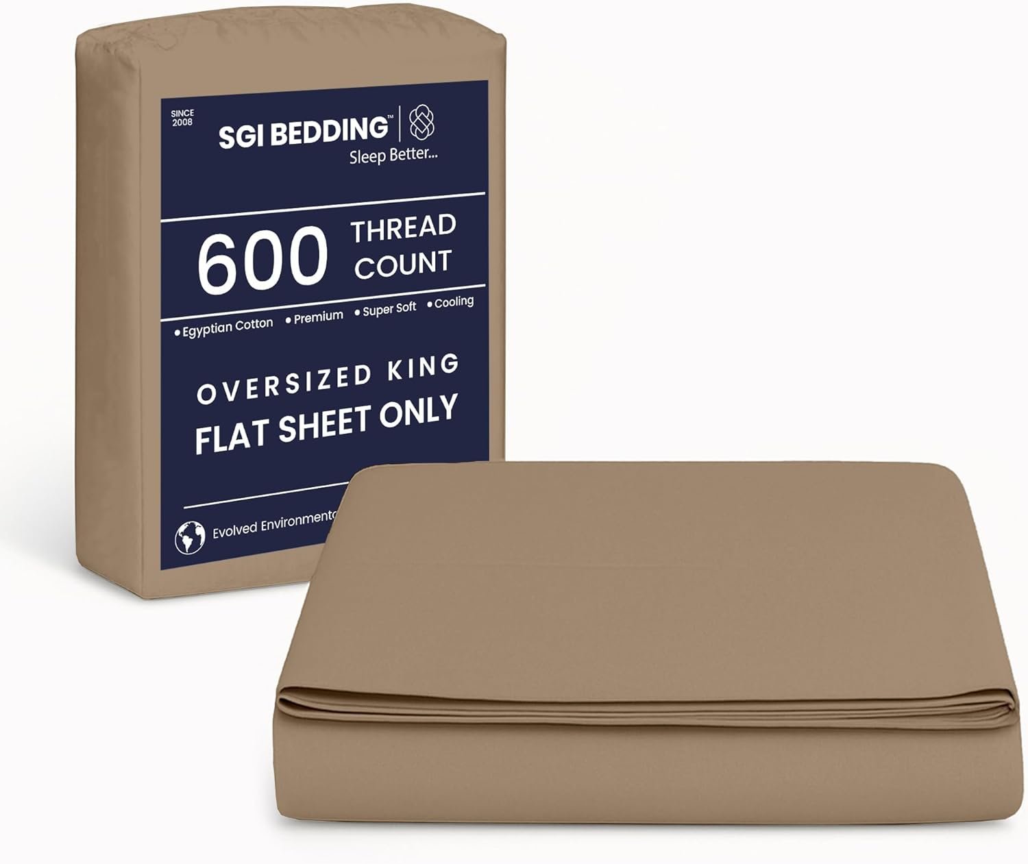 SGI Bedding 136″ W x 120″ L 1Pc Alberta King Flat Sheet Only – 600 Thread Count – 100% Egyptian Cotton Soft Breathable Luxury Oversized Sheets, for Extra Large Beds – Taupe