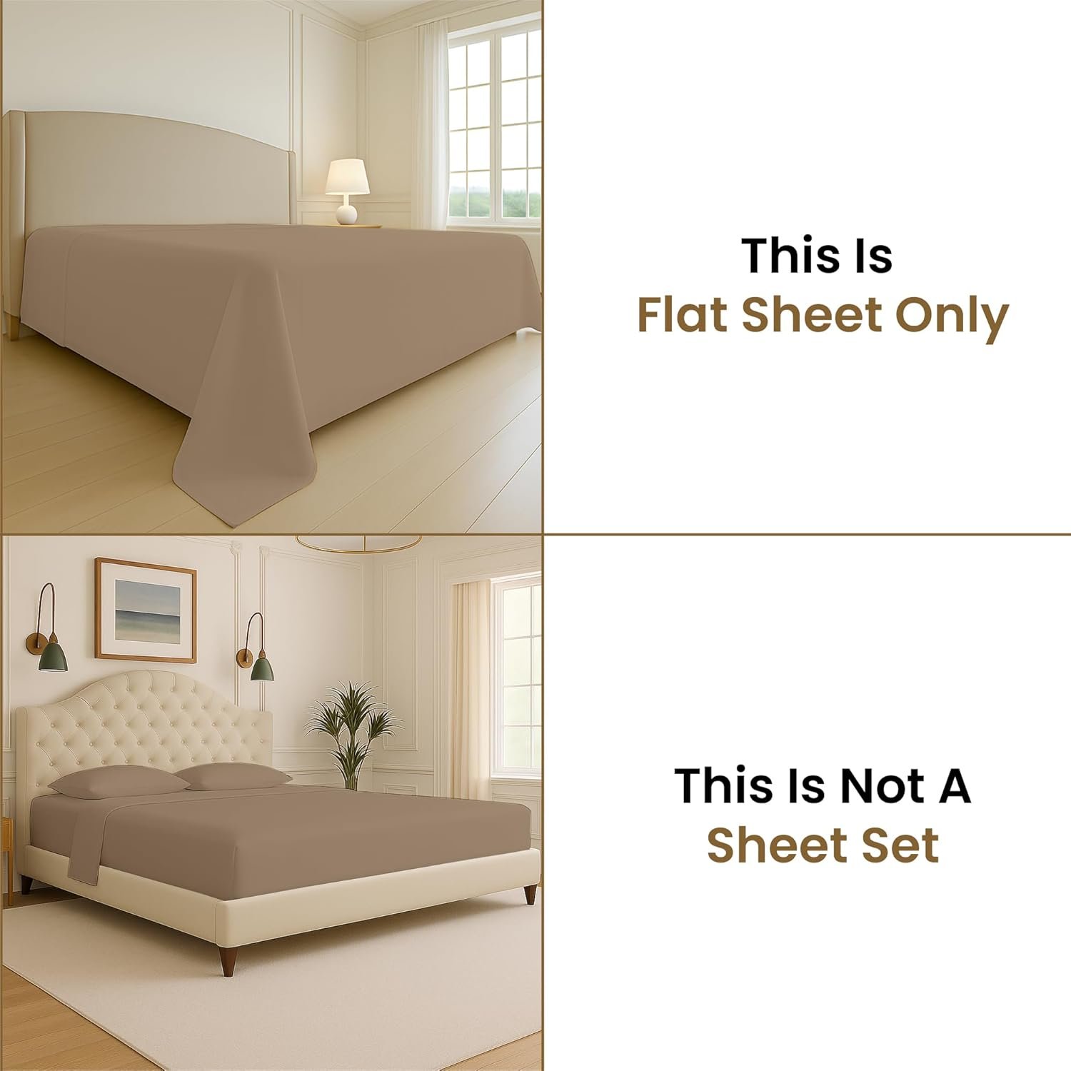 SGI Bedding 132″ W x 114″ L 1Pc Vermont King Flat Sheet Only – 600 Thread Count – 100% Egyptian Cotton Soft Breathable Luxury Oversized Sheets, for Extra Large Beds – Taupe