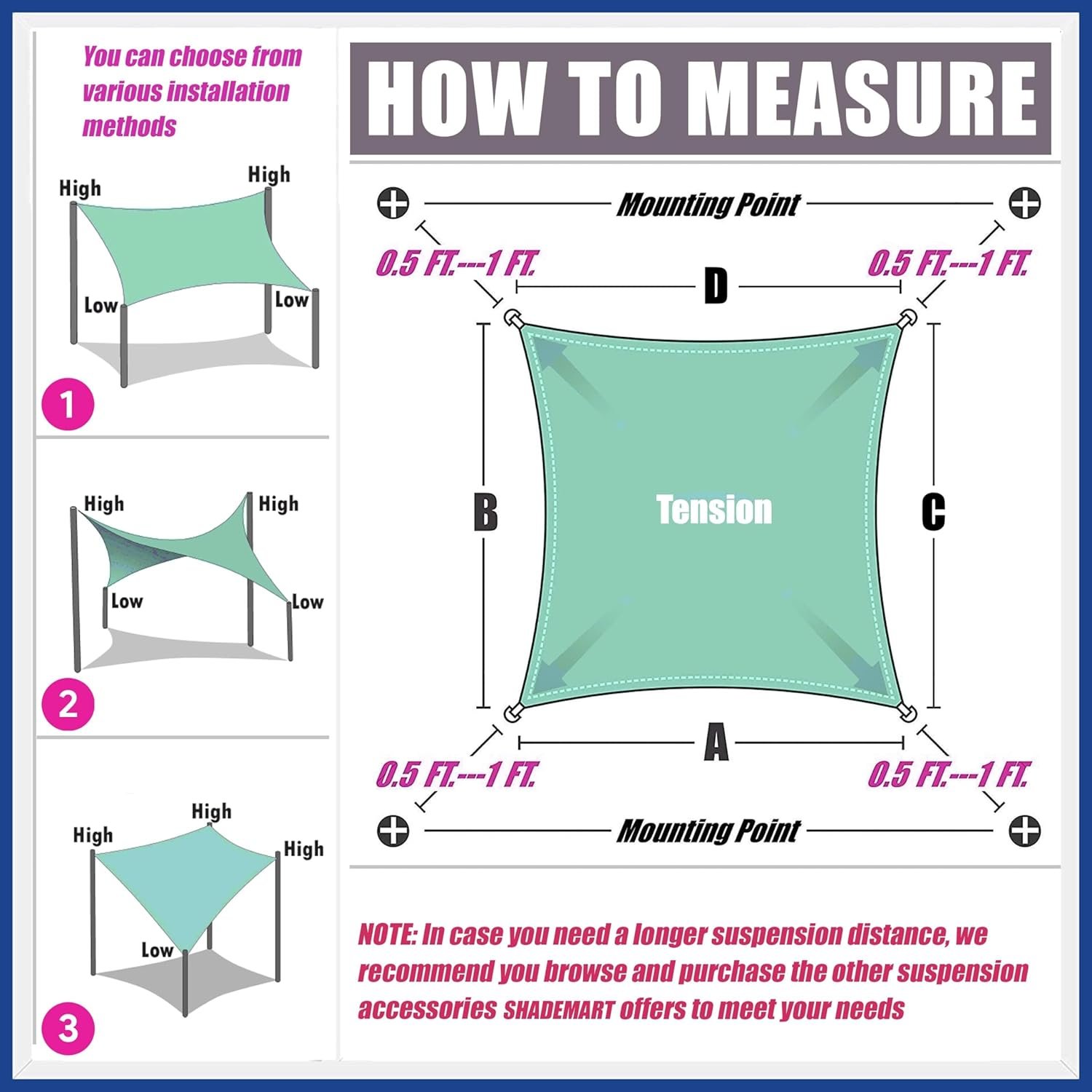 Custom Size: we have a large selection of custom sized shade sails to meet all your requirements, please measure your venue accurately before purchasing; Shade sails may vary due to manual measurements, but the area of the fabric is constant