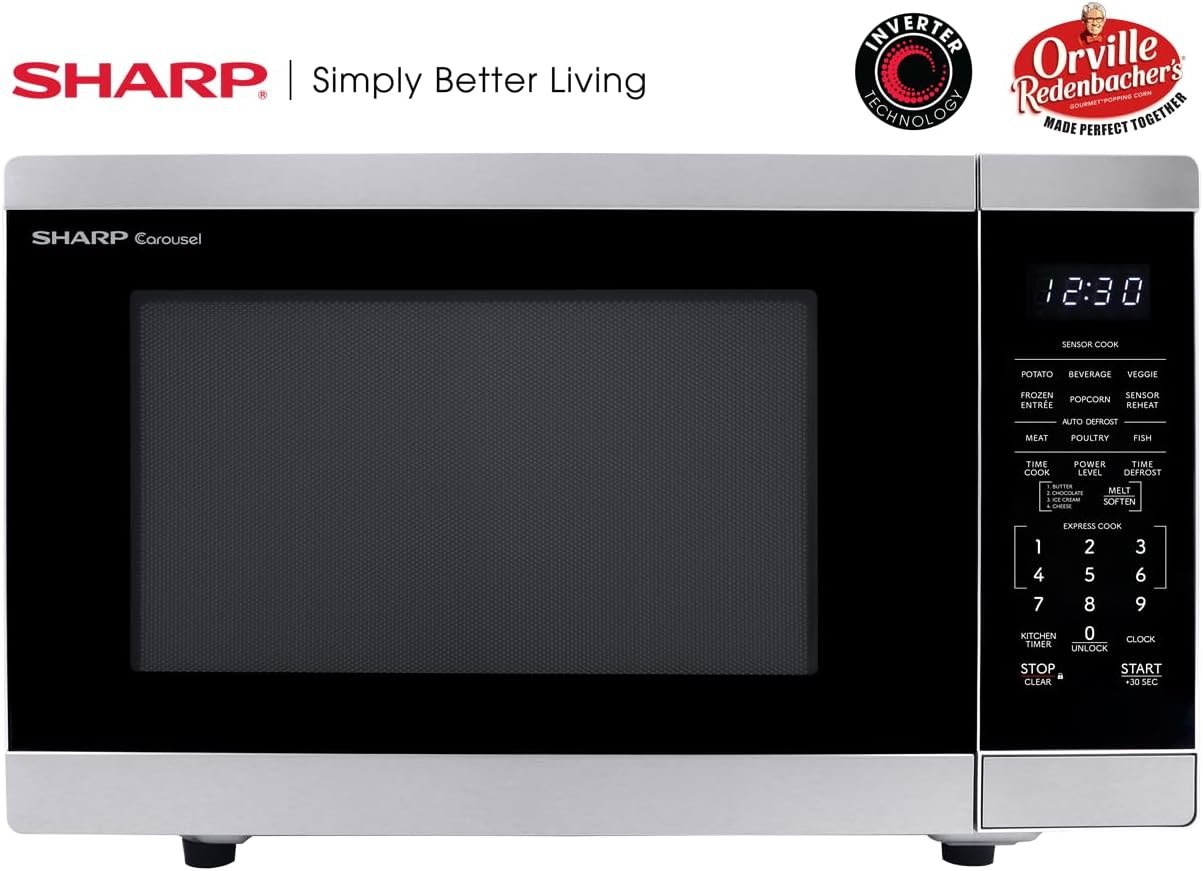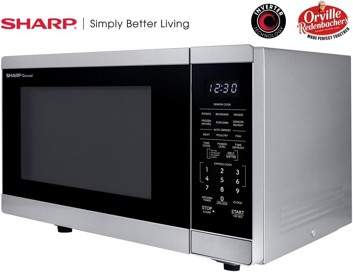 SHARP Countertop Microwave Oven with Removable 12.4″ Carousel Turntable, 1100 Watt, 1.4 Cubic Feet, Stainless Steel