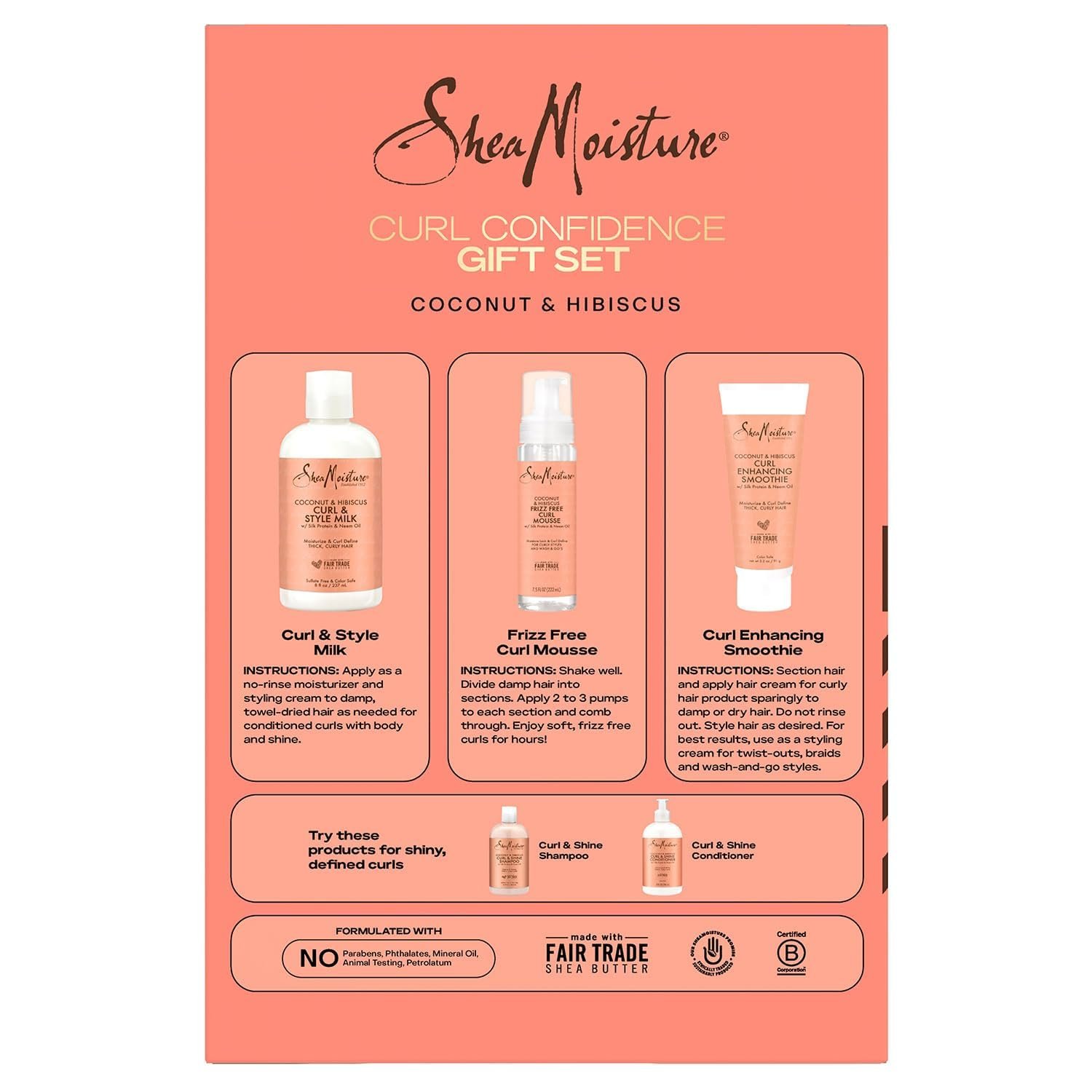 SheaMoisture Coconut & Hibiscus Hair Care Bundle – Curl Enhancing Smoothie, Curl & Style Milk + Frizz Free Curl Mousse (3 Piece Set)