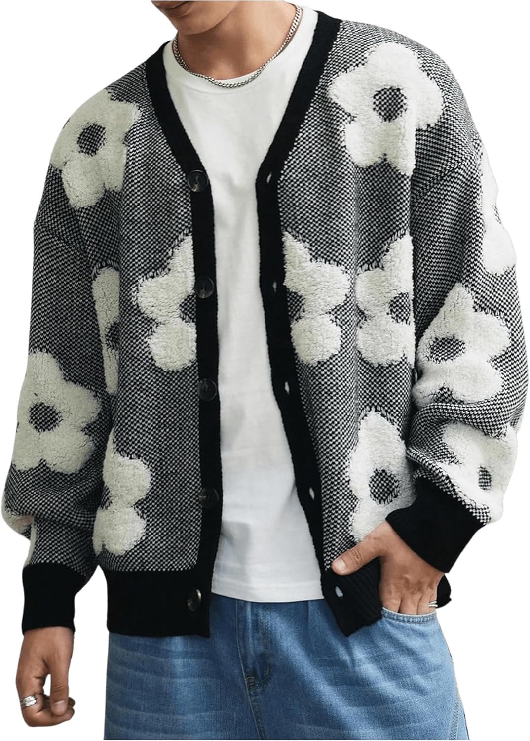 SHENHE Men’s Skeleton Pattern Cardigan Sweaters Long Sleeve Unisex Outwear Knitted Coats