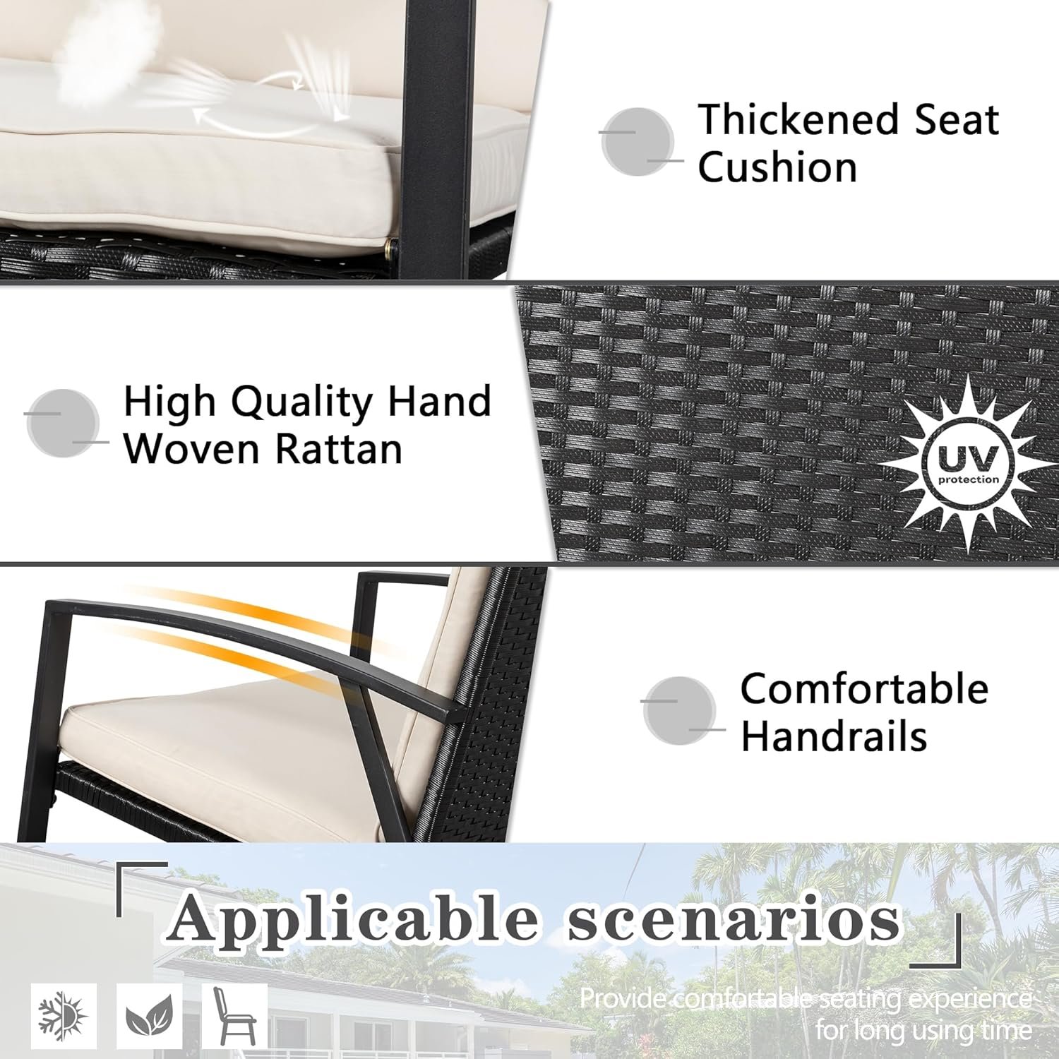 When it comes to kicking back and enjoying some time outside, you want to feel relaxed and comfortable while you’re having lunch, reading a book, or catching a quick nap. That’s what Shintenchi Rocking Bistro Set provides, the perfect setting for sharing cocktails, watching the sun go down, or chatting with friends. Kick back, relax, and enjoy the smooth rocking glide while socializing with friends or indulging yourself in your favorite book. Feature Strong Steel Frame And Rattan Seat With Sponge Cushions Gives You Comfortable And Relax. Composed of lightweight rattan wicker and a sturdy metal frame Comfortable rocking to and fro experience Widely used for outdoor patio, garden, lawn, balcony side Unique Rocking design with Long-lasting rattan material Easy Assembly required