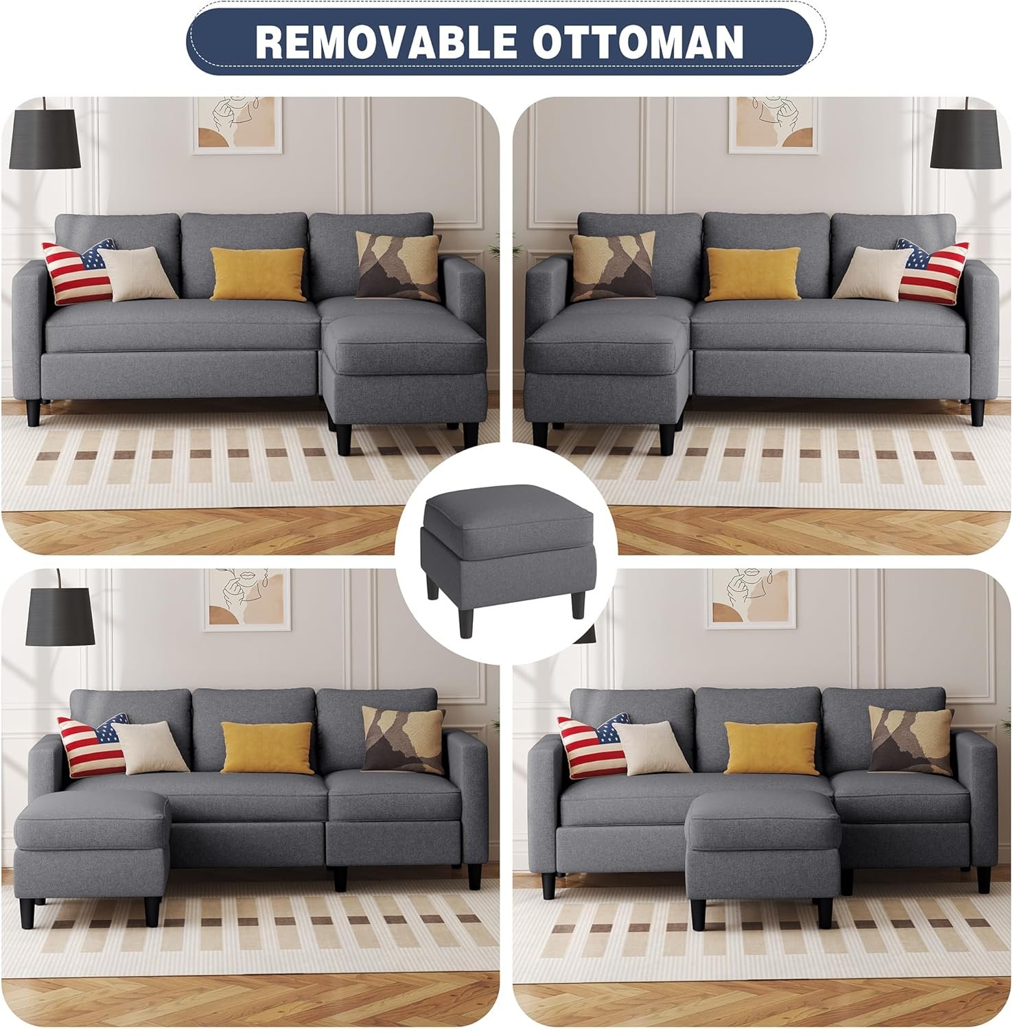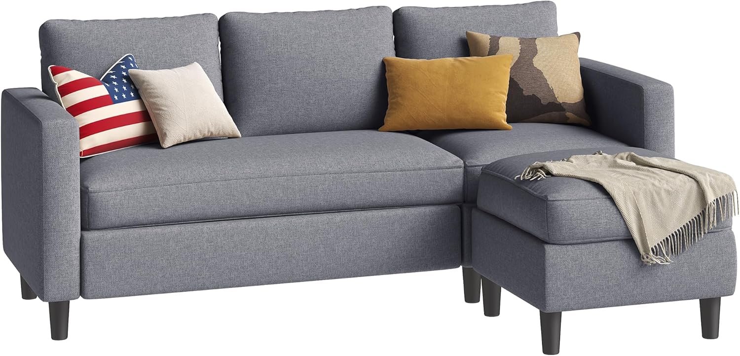Convertible Couch: This sectional couch sofa with a movable ottoman, you can place it on left or right of sofa couch to make up a chaise longue, which can take a nap at any time and change the style in your living room.