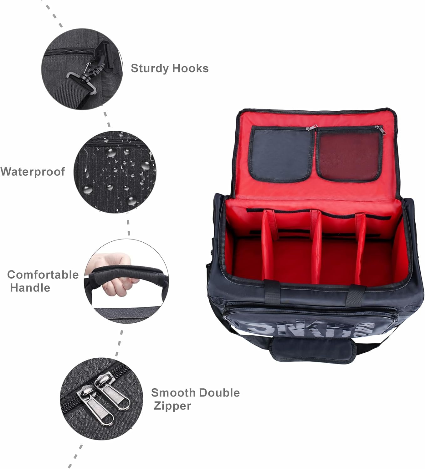 [WELL-PROTECTED] Our sneaker duffle bag has a waterproof surface, padded insert, and colorfast inside. These features protect items, such as shoes and apparel, as well as electronic gadgets, from damage caused by liquid, impact, and fabric bleeding/fading. The velcro divider in the middle effectively prevents any unwanted squeezing or shifting of your items.