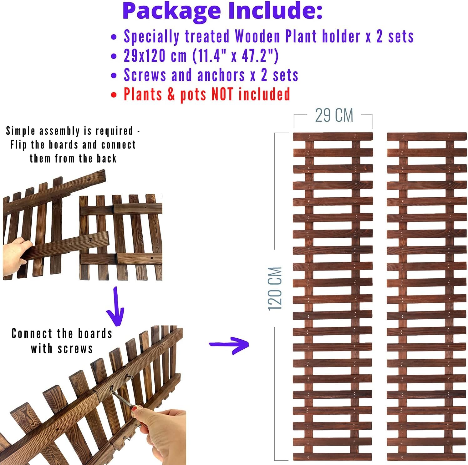 ShopLaLa Wall Planter – 2 Pack, Wooden Hanging Large Planters for Indoor Outdoor Plants, Live Vertical Garden, Plant Wall Mount Flower Pot Holder Hanger Stand Green Herb Wall Decor 47.2″ (120cm)