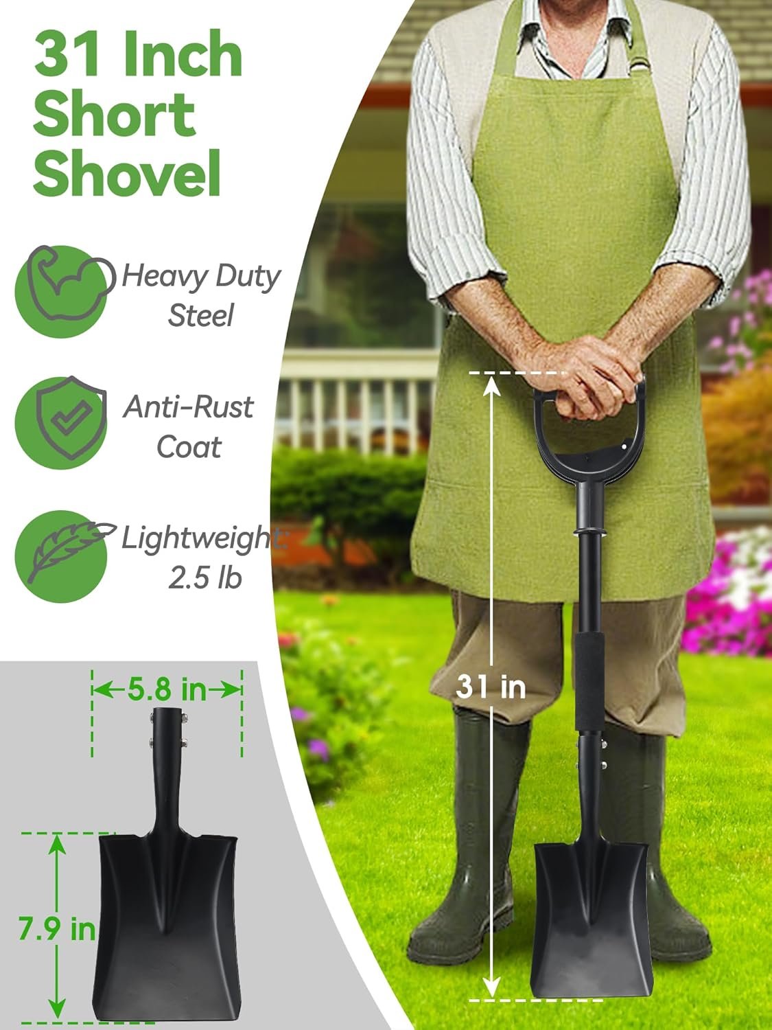 Small & Lightweight: At 31” long, the compact spade is easy to carry and store in your trunk for camping or car emergency use. Its 2.2 lb light weight also makes our small garden shovel suitable for children to use, making it a family-friendly tool.