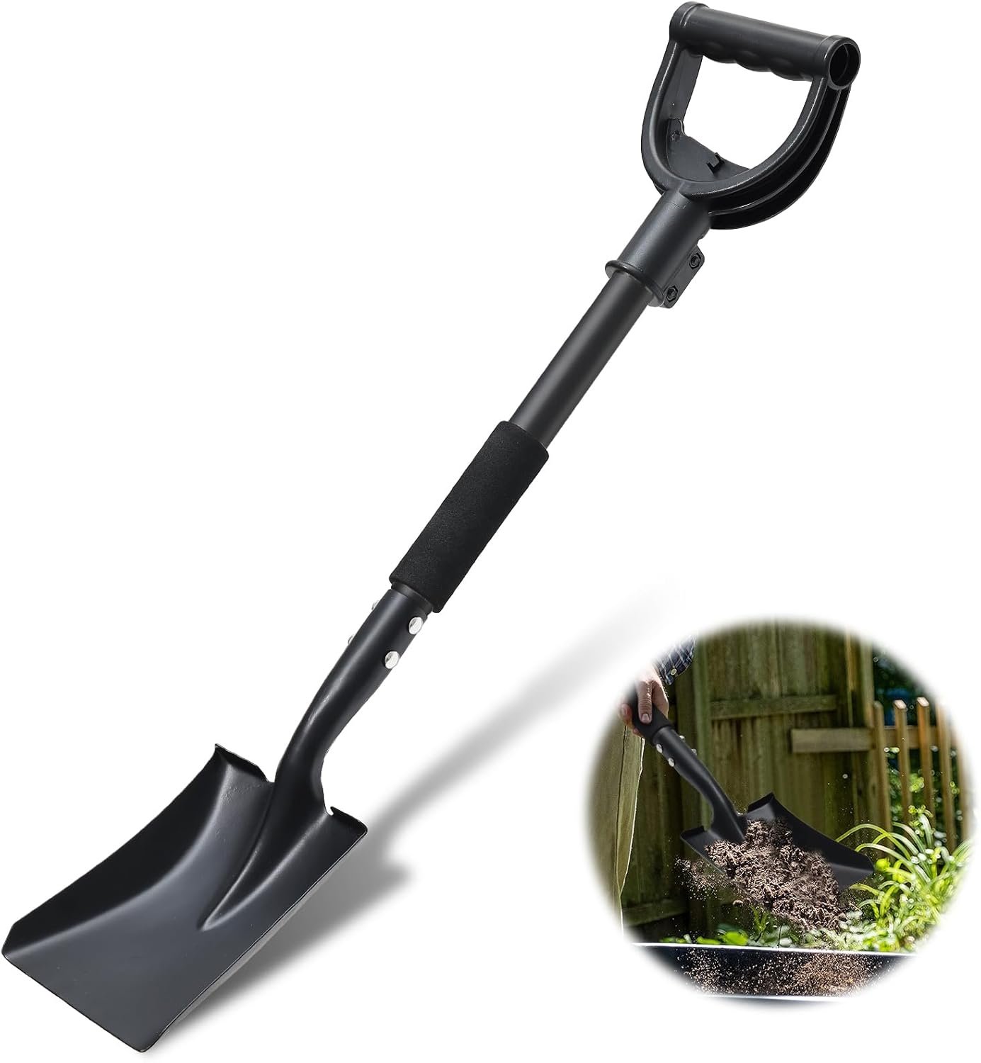 Easy Use: The short-handle shovel features a large D-handle and a foamed middle grip which are comfortable to hold and control the shovel with, and the foot platform on the blade helps to maximize force when driving through tough soil and plant roots.
