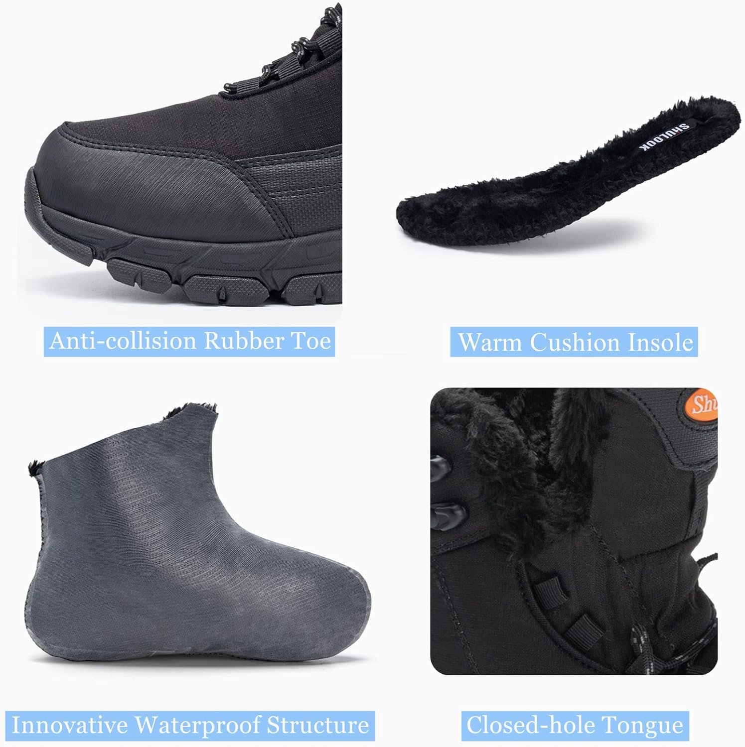 SHULOOK Men’s Snow Boots Waterproof Warm Fur Lined Winter Hiking Boot Non-slip Outdoor Ankle High-top Shoes Work Hiker Trekking Trail