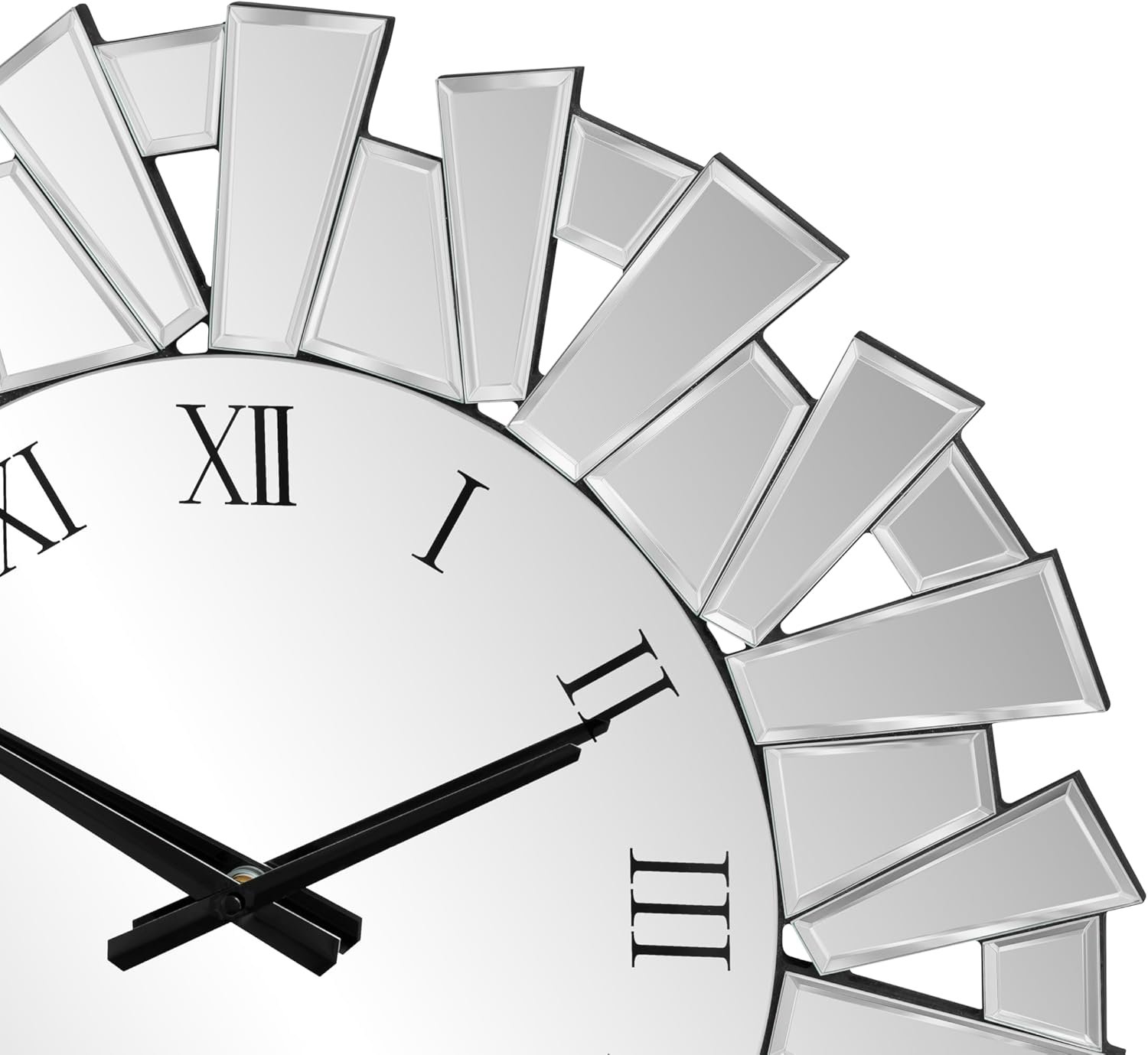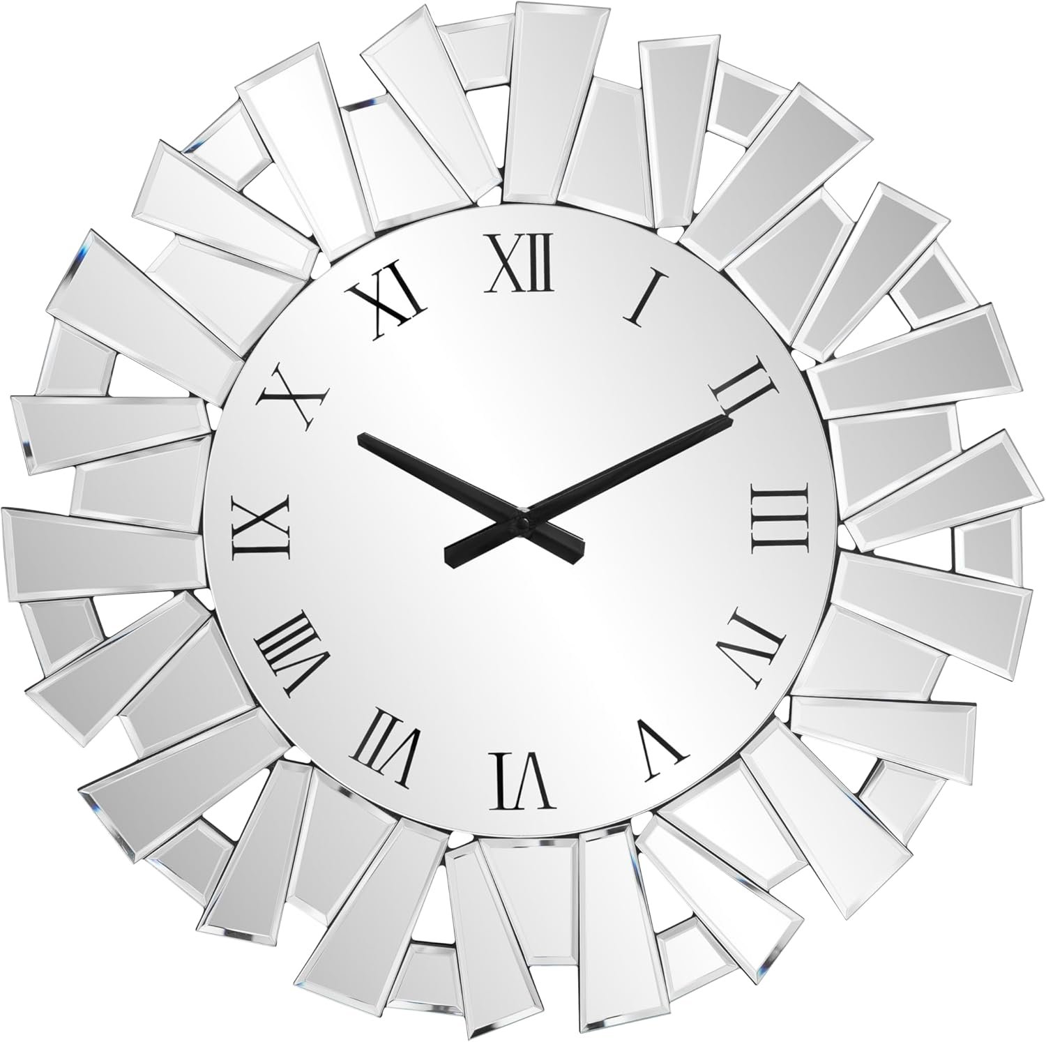 Elegant Art Deco Style – Stunning Home Accent: This decorative mirror wall clock features a dazzling silver beveled glass frame, reflecting light beautifully and creating a spacious, sophisticated atmosphere. Instantly elevate your living room, dining room, or bedroom with this exquisite timepiece.