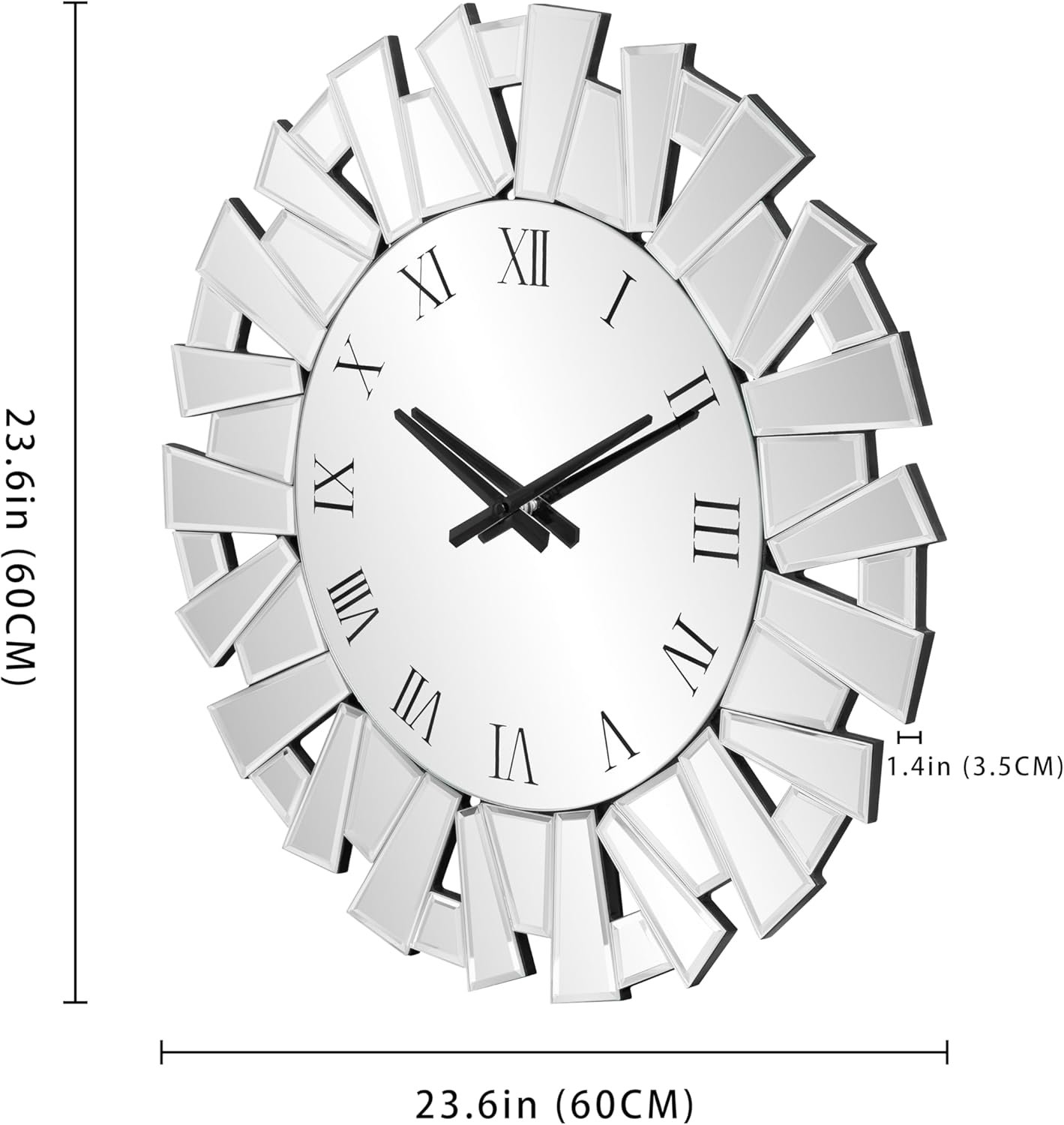 Large 23.62″ Design – Statement Piece for Any Space: Measuring 23.62 inches in diameter, this large modern wall clock makes a bold statement on any wall. The round mirror design enhances room brightness and adds depth, making it an ideal choice for home, office, or hallway decor.