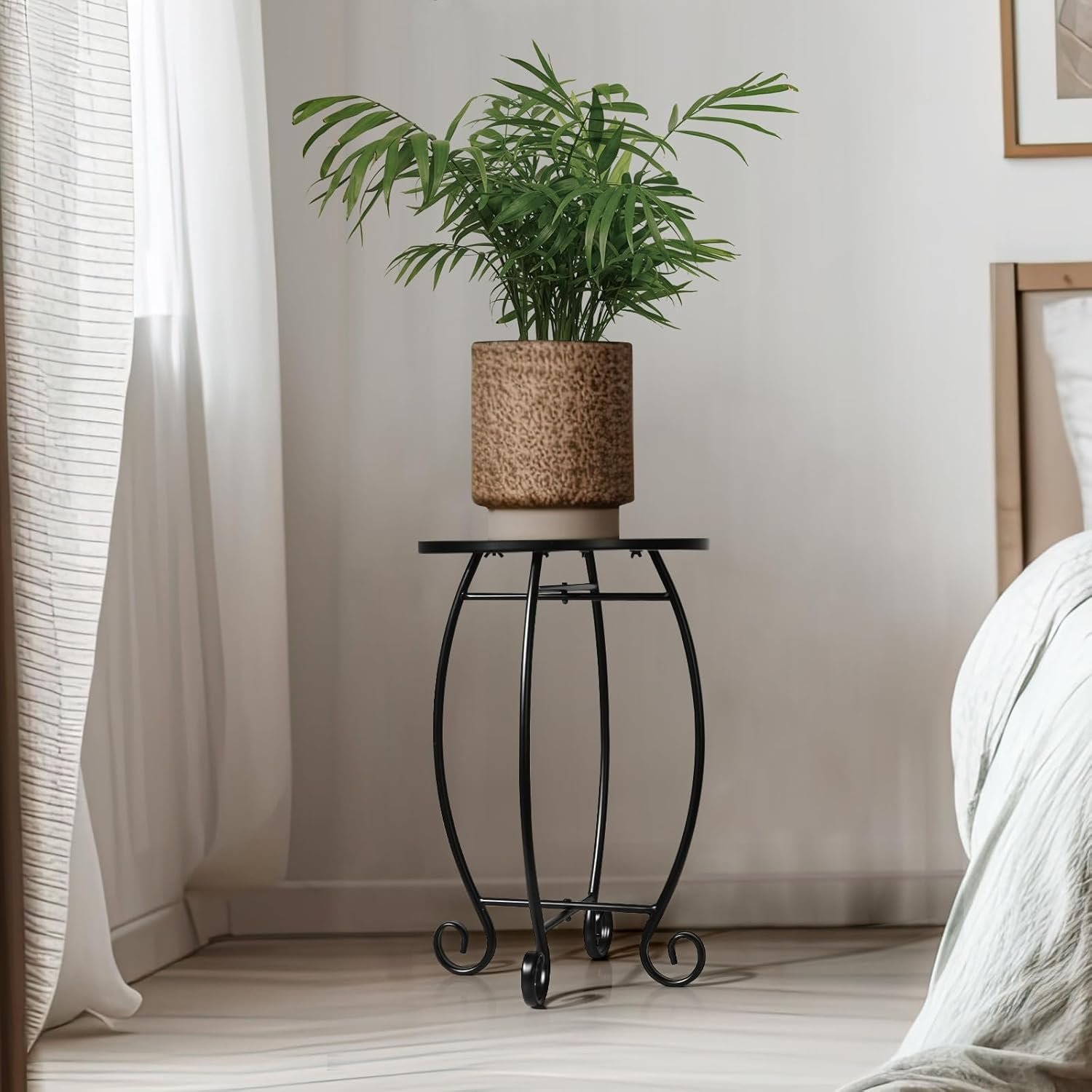【Easy Installation】You can install this round bedroom end table in less than 1 minute. Simply adjust the table legs to match the screws of the tabletop, and tighten the screws, then install the non-slip pads. Then everything is done.