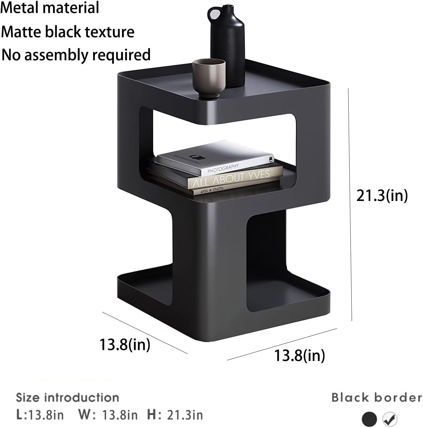 【No Assembly Required】 The modern metal side table use of integrated welding process, no assembly, Open the package and use it. Measuring at 13.8”W x 13.8”D x 21.2”H.