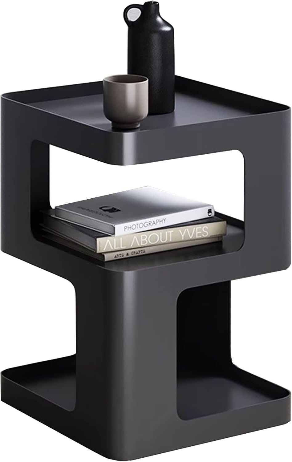 Side Table,Modern end Table,Black Metal nightstand,Bedside Tables,Accent Table with Storage for Living Room Bedroom entryway Couch,no Assembly Required,Unique Furniture.